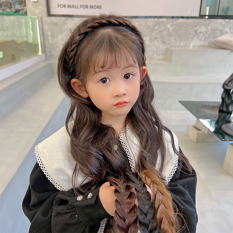 Детский парик, ободок с косичкой, нескользящие детские шпильки для волос, аксессуар для волос