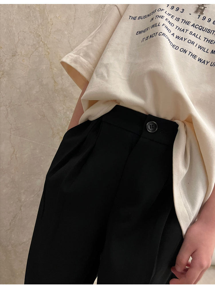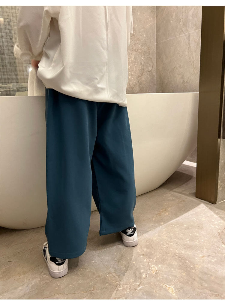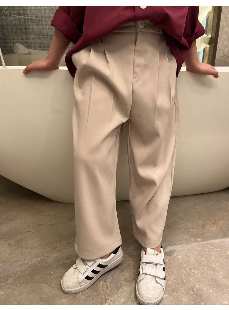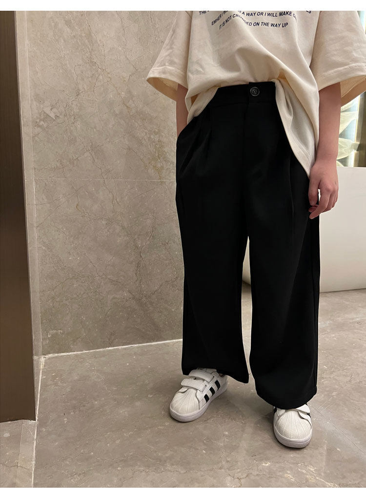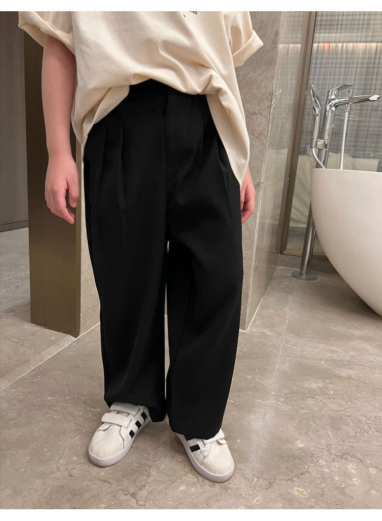 Весенние детские черные штаны для мальчиков для отдыха, свободный прямой крой, в корейском стиле, в западном стиле, популярно в интернете