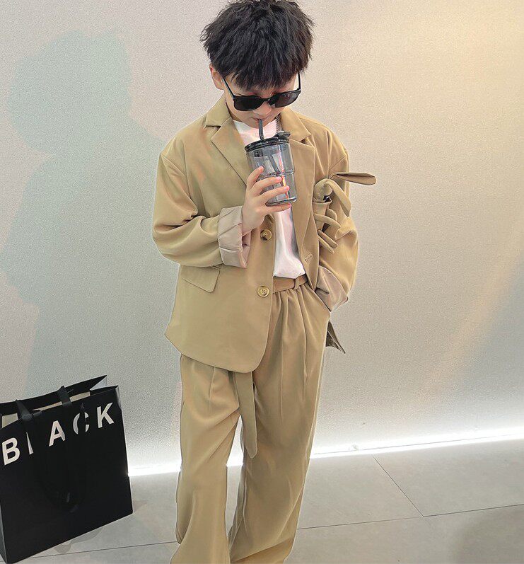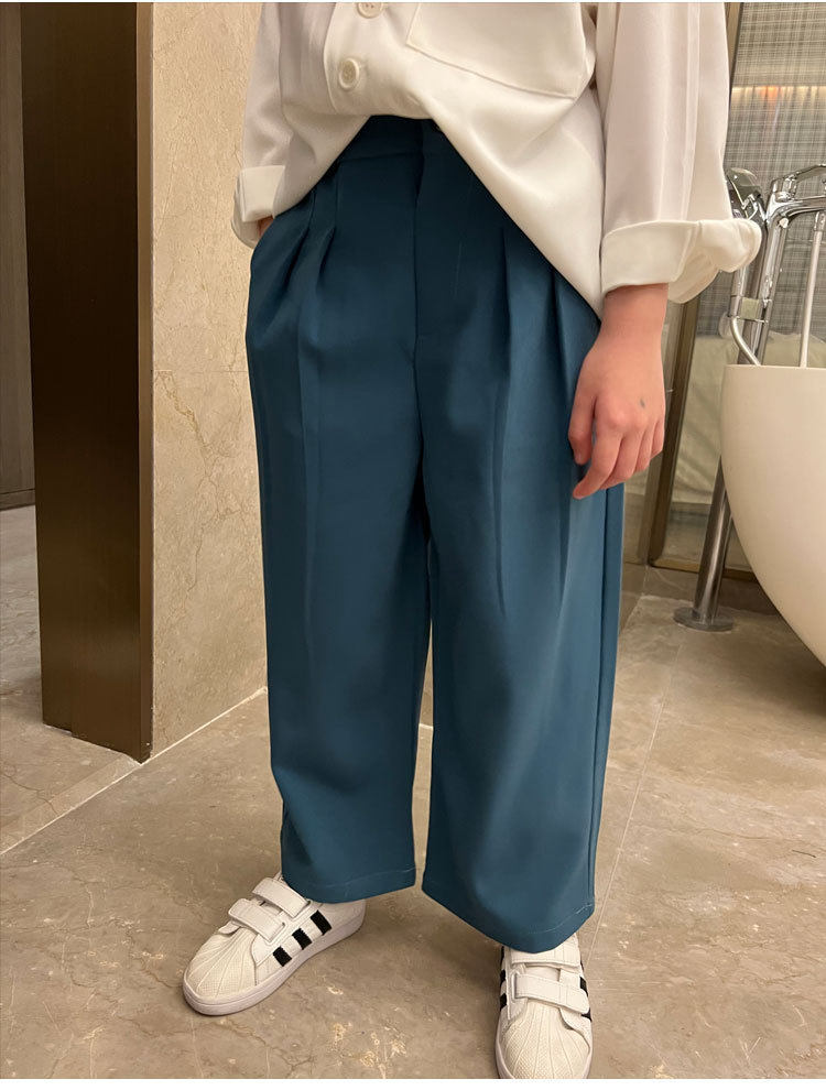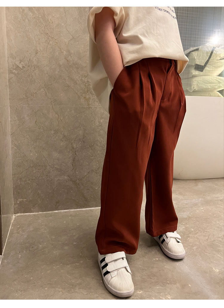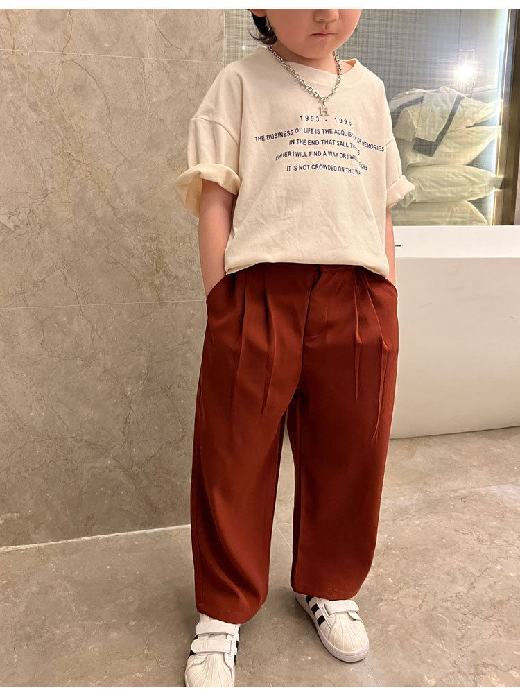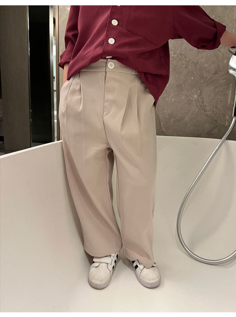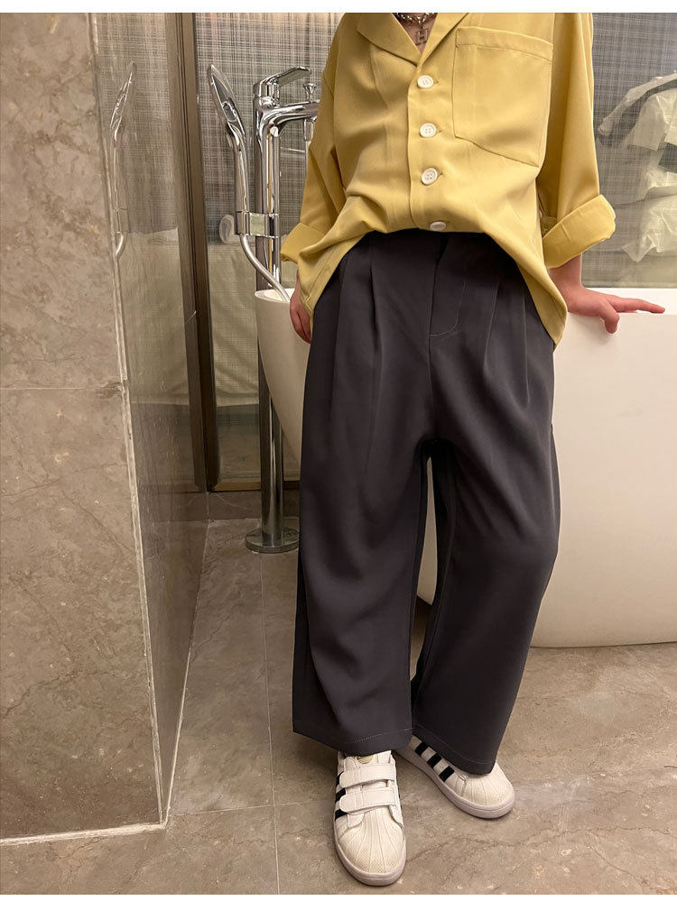 Весенние детские черные штаны для мальчиков для отдыха, свободный прямой крой, в корейском стиле, в западном стиле, популярно в интернете