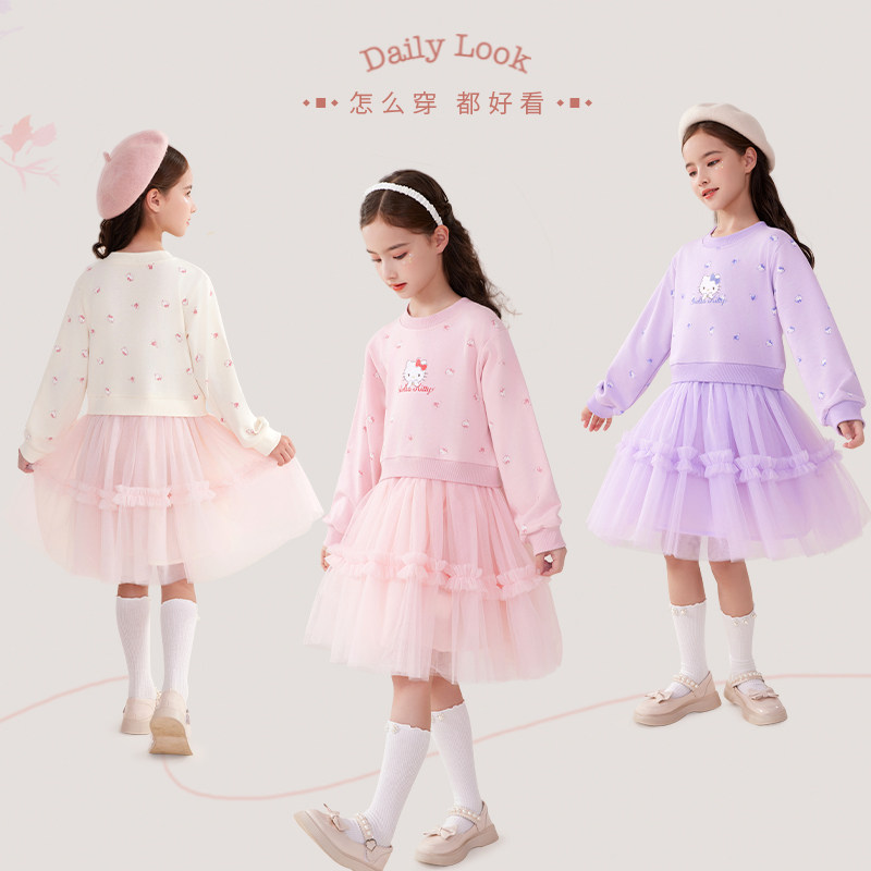 Hello kitty, платье, осенний наряд маленькой принцессы, детская милая юбка, подходит для подростков, детская одежда