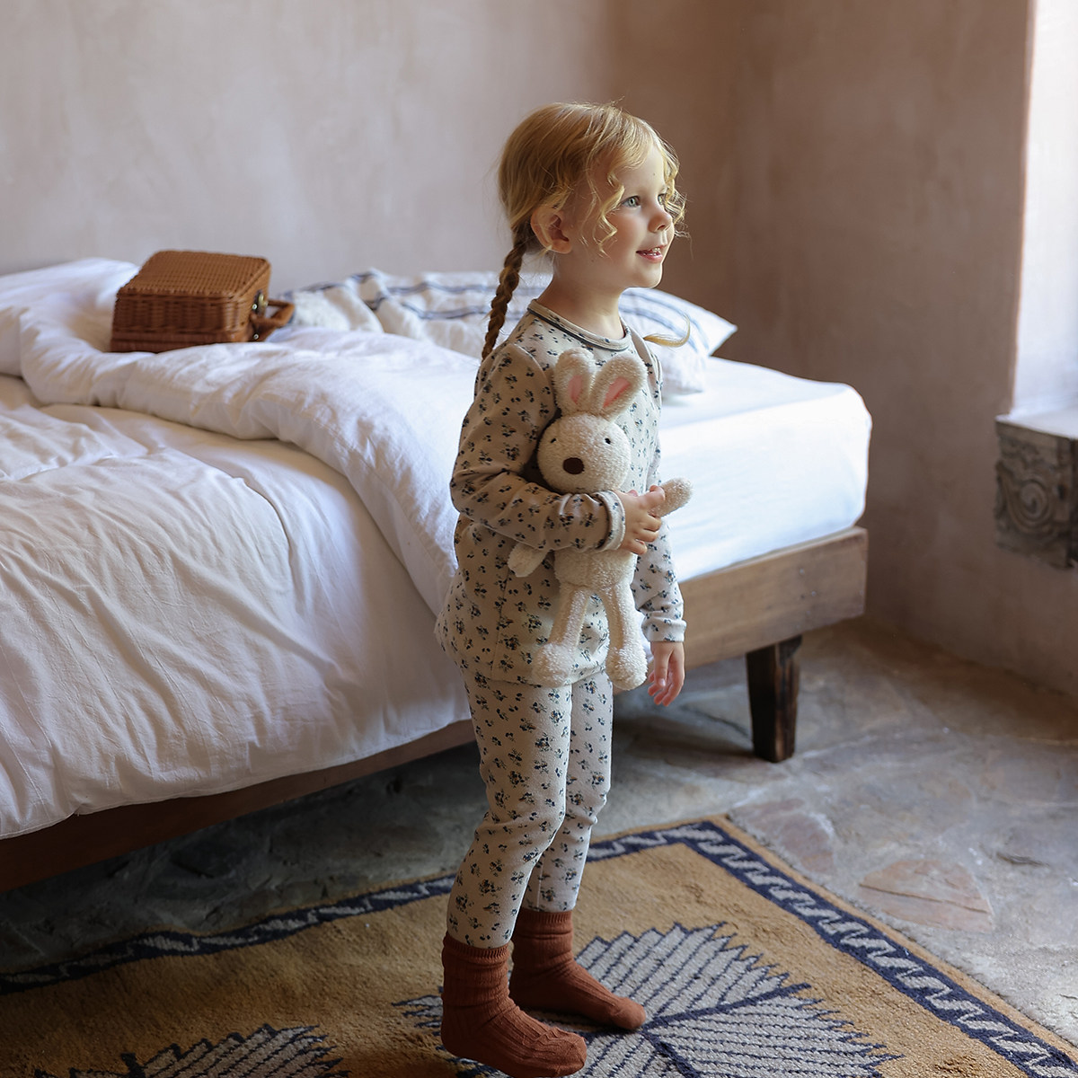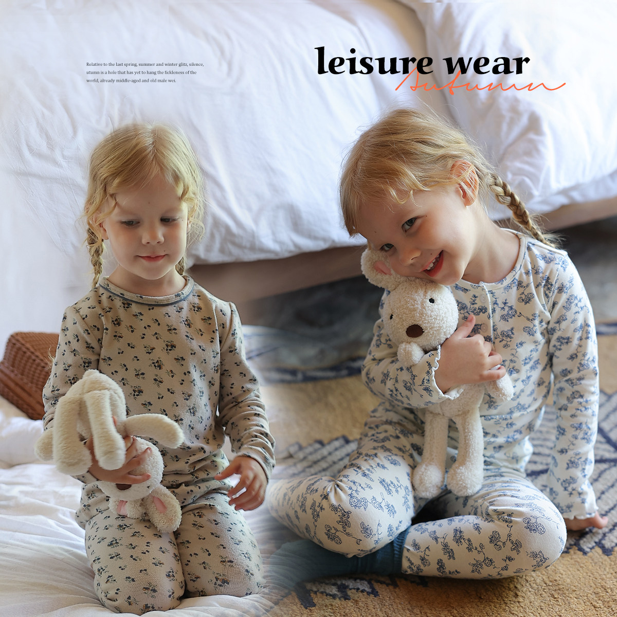 Цветочные композиции, пижама, детский осенний комплект, хлопковое термобелье, цветочный принт, в западном стиле