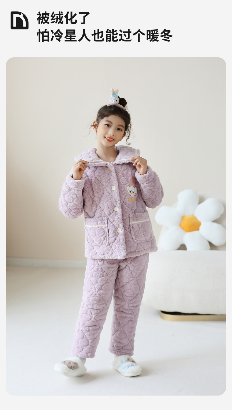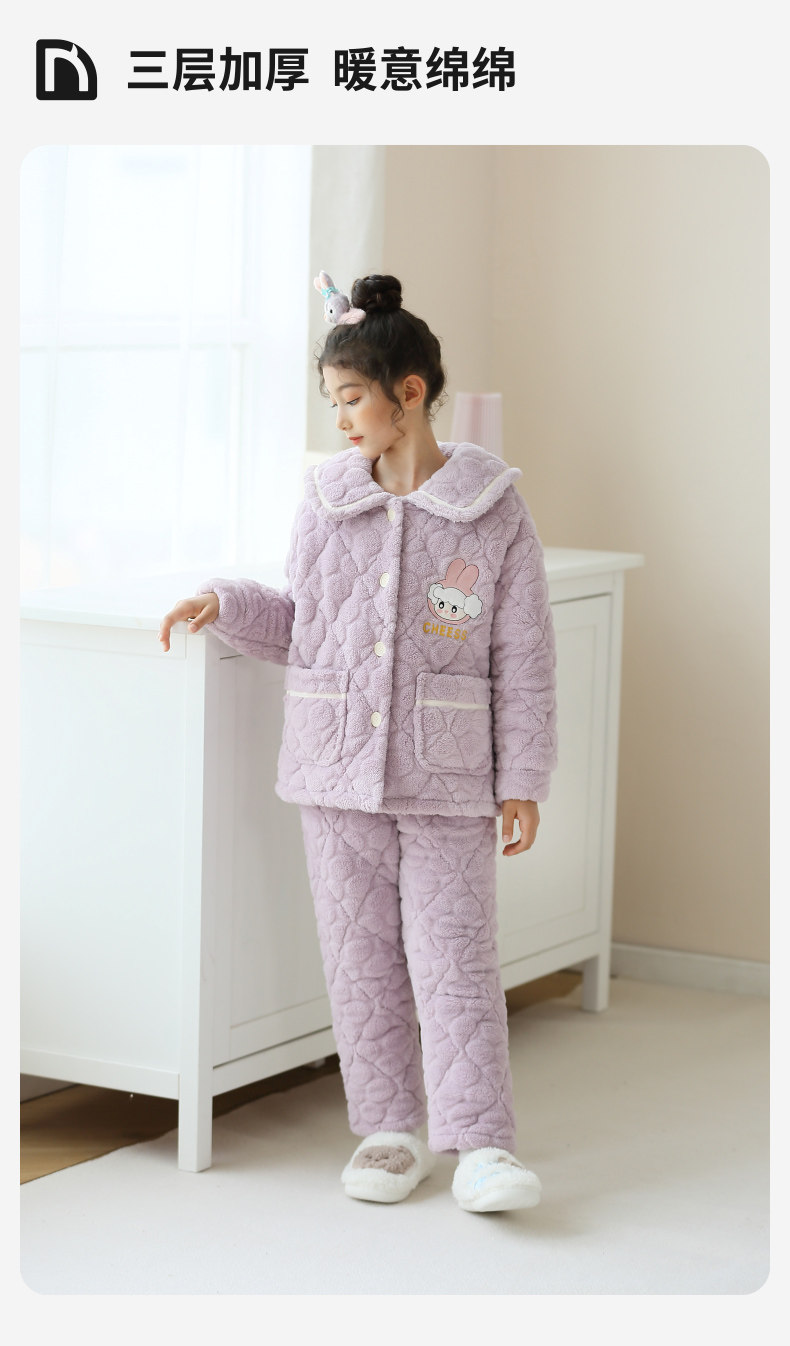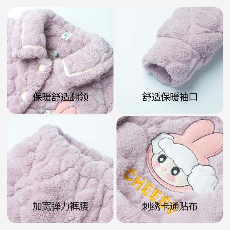 Зимняя детская коралловая бархатная стеганая демисезонная фланелевая пижама, увеличенная толщина, подходит для подростков