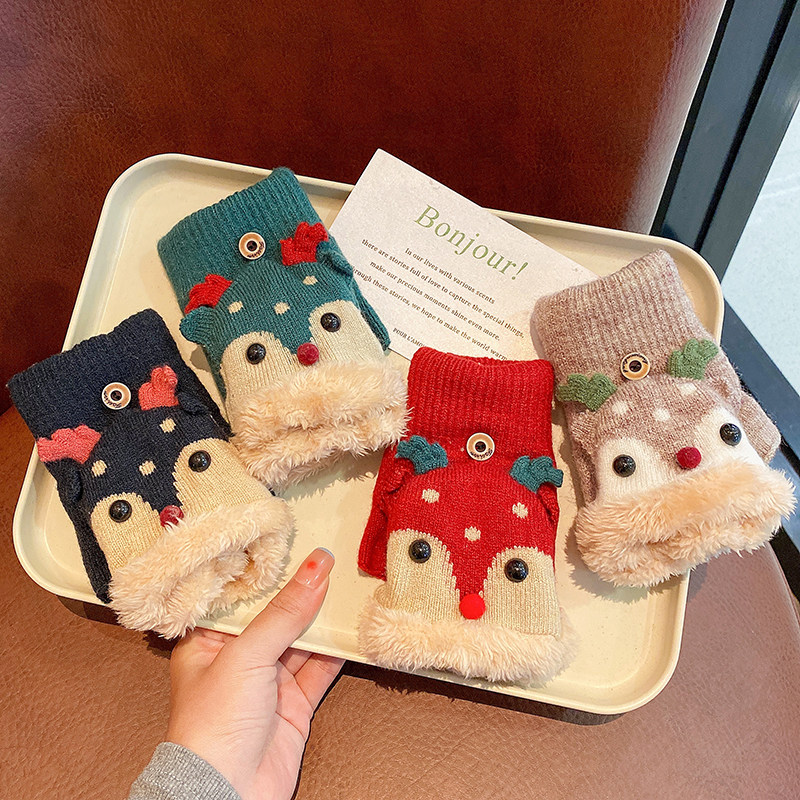 Детские зимние удерживающие тепло утепленные перчатки для девочек, без пальцев