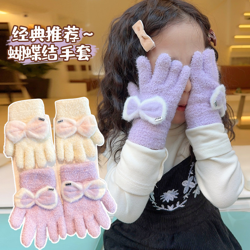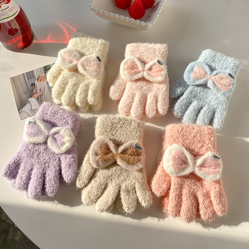 Детские демисезонные трикотажные удерживающие тепло ветрозащитные перчатки для мальчиков и девочек с бантиком