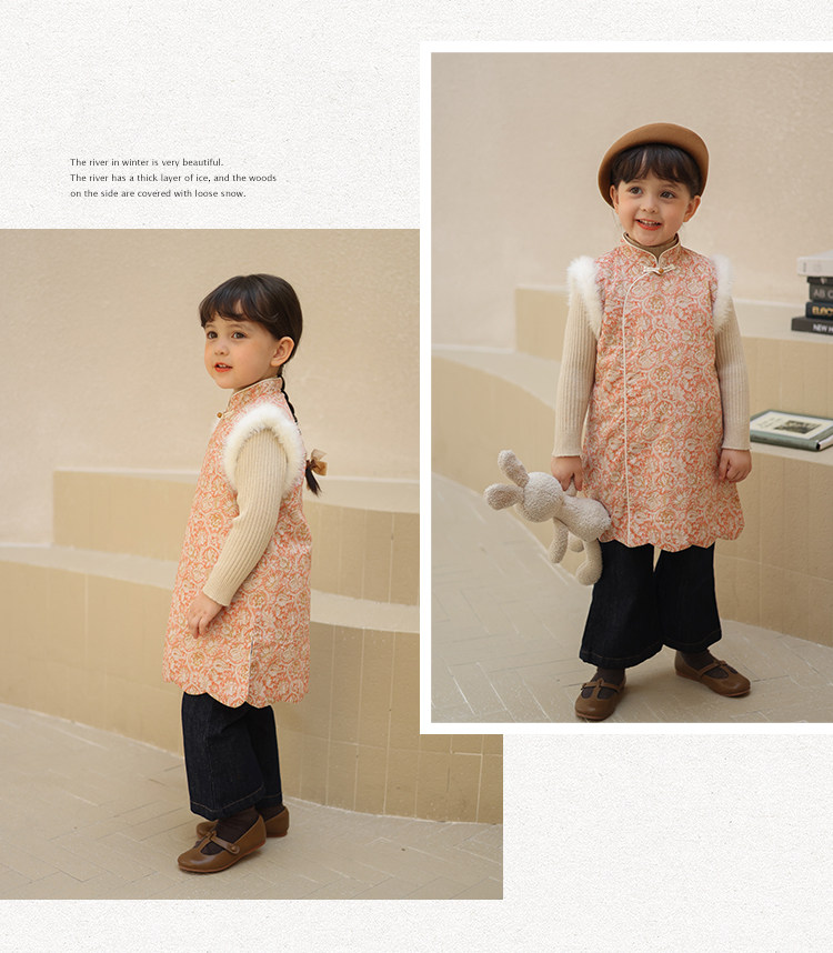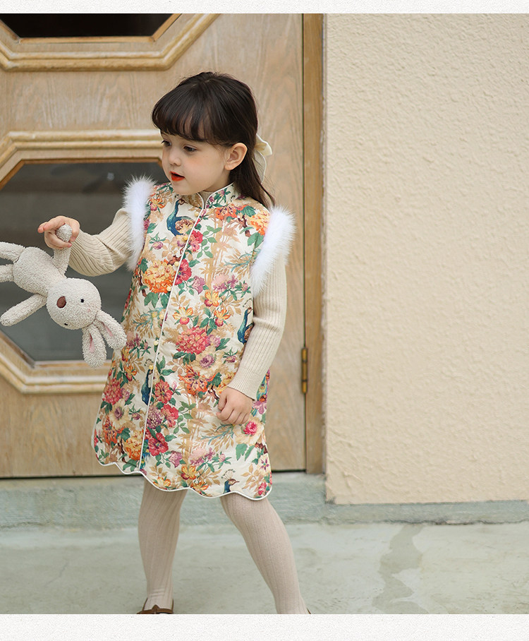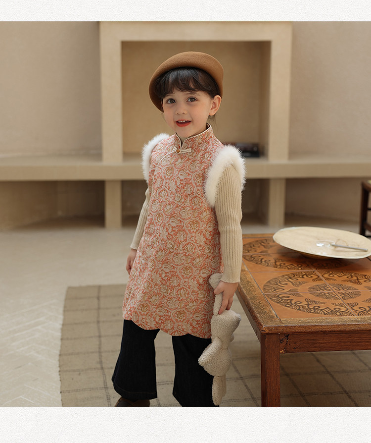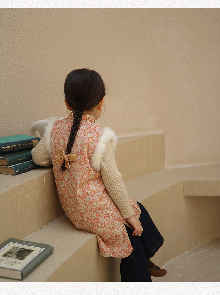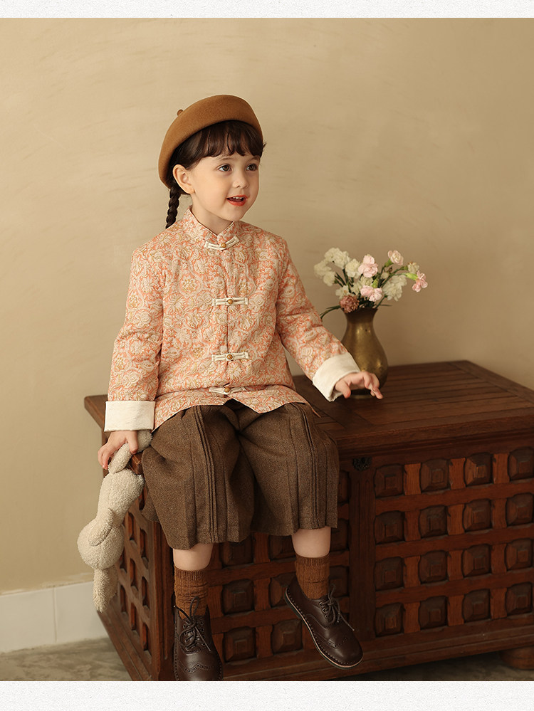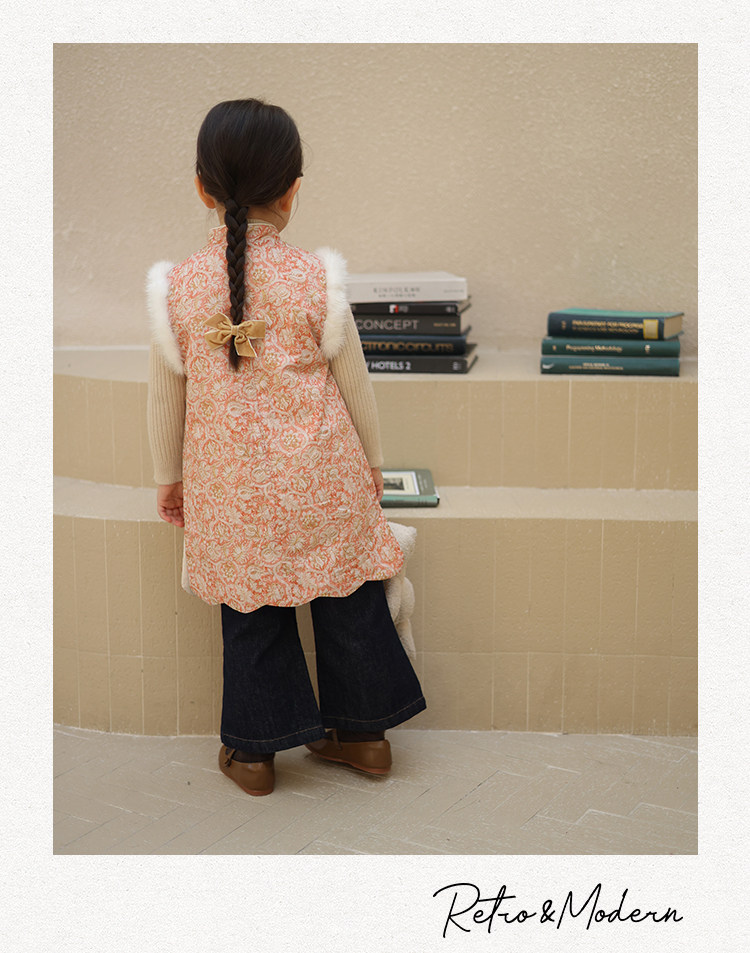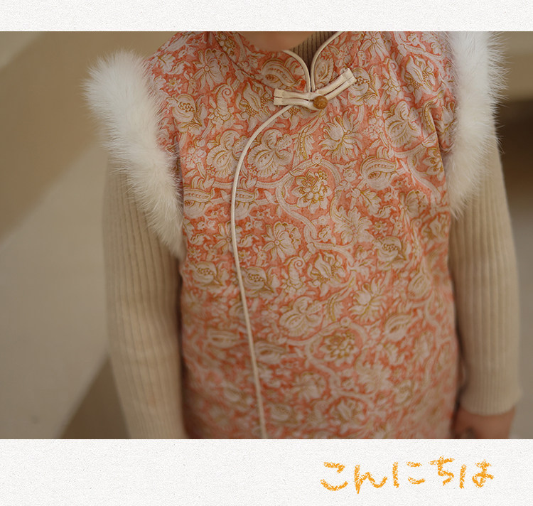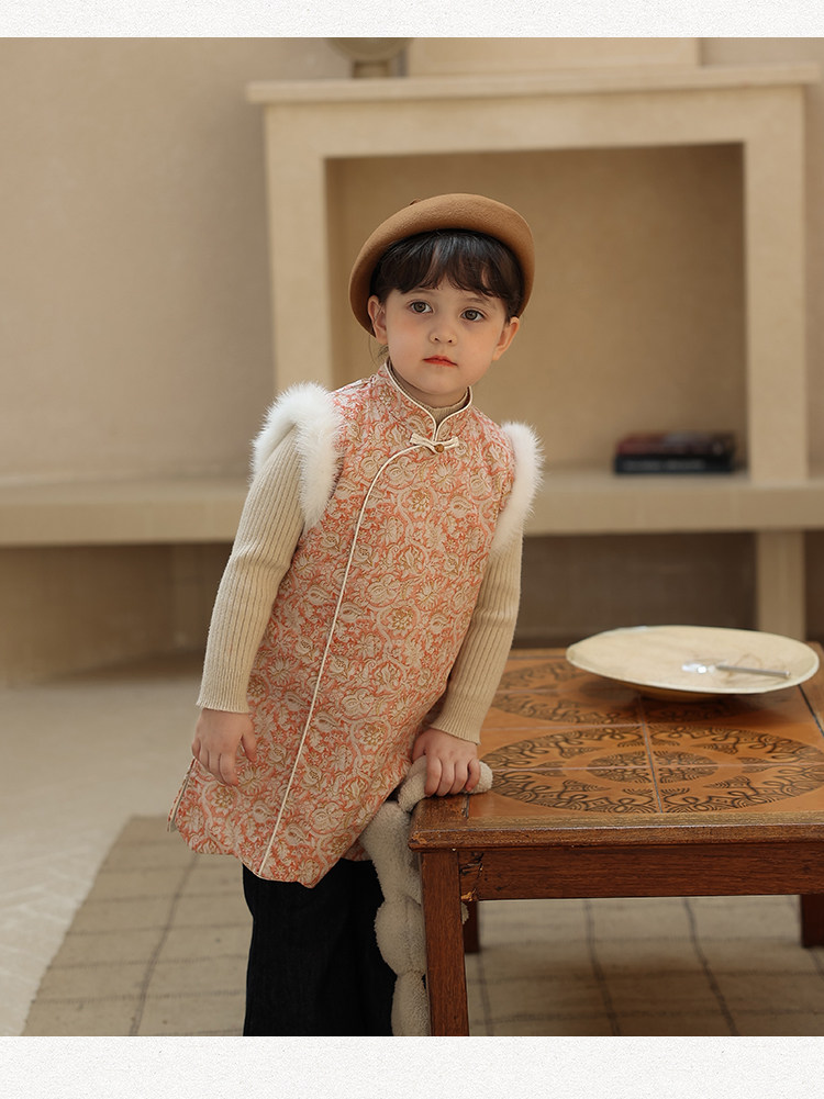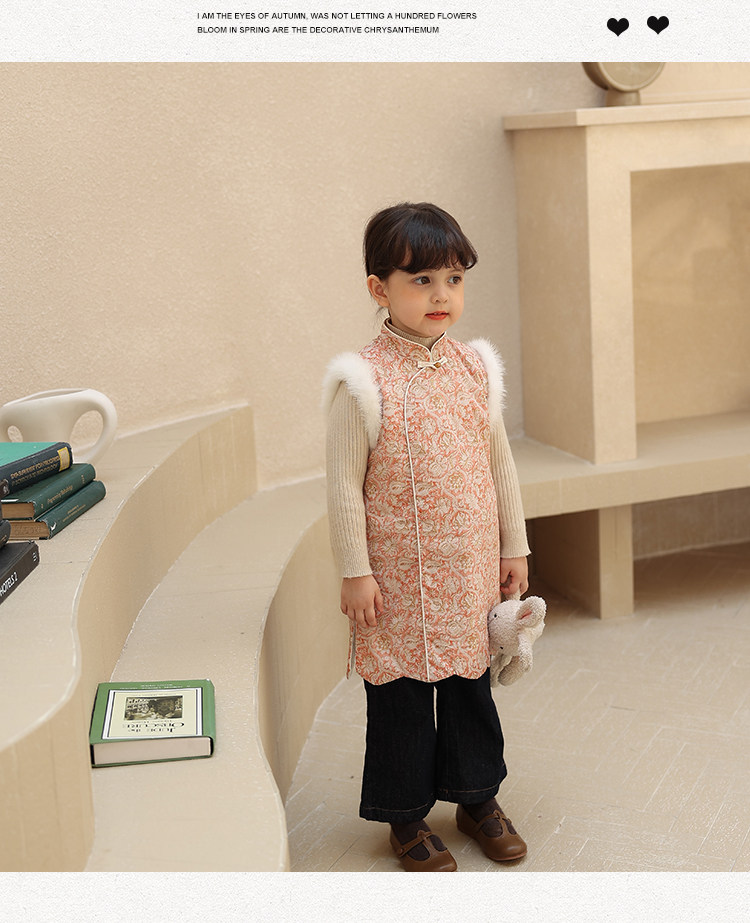 Ципао, жилет, пуховик, детский демисезонный ретро комплект, китайский стиль