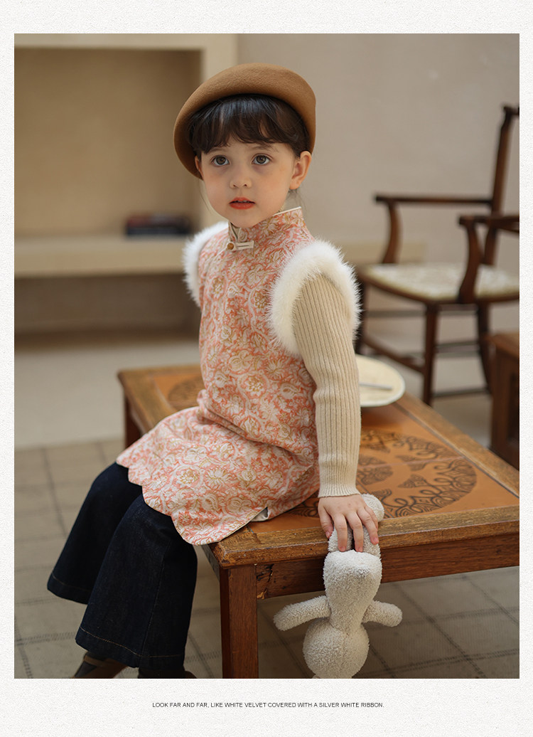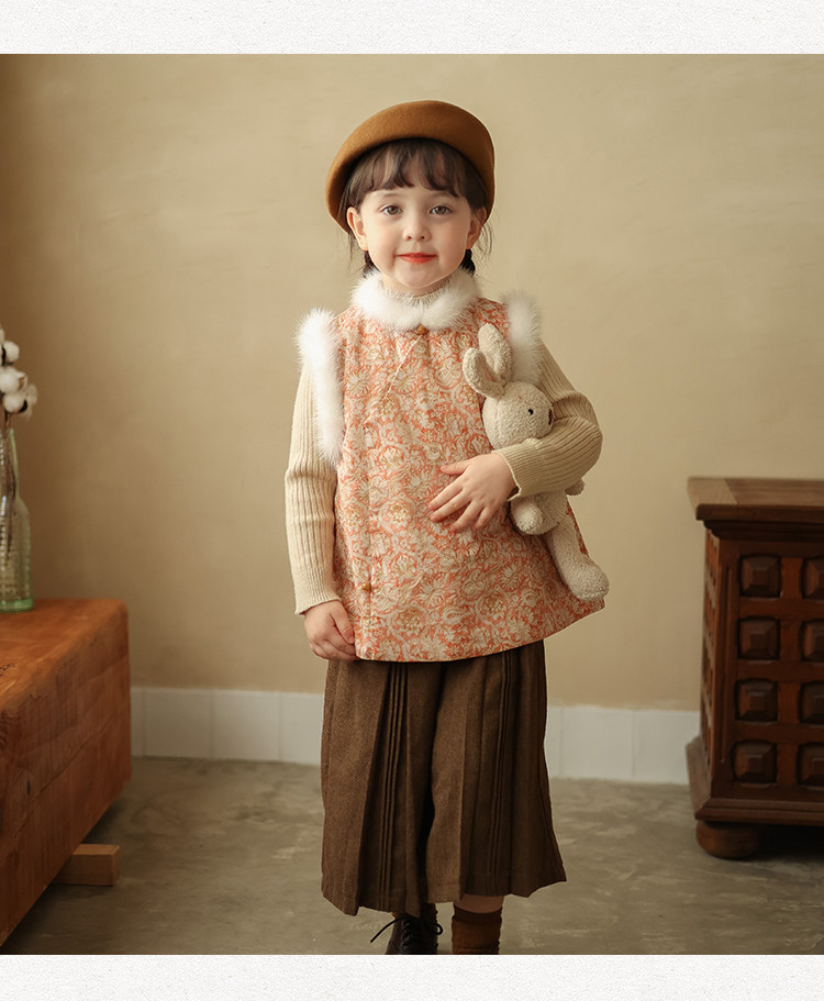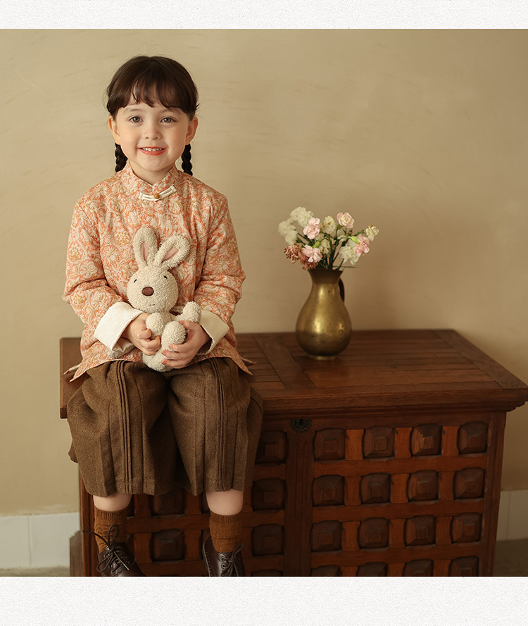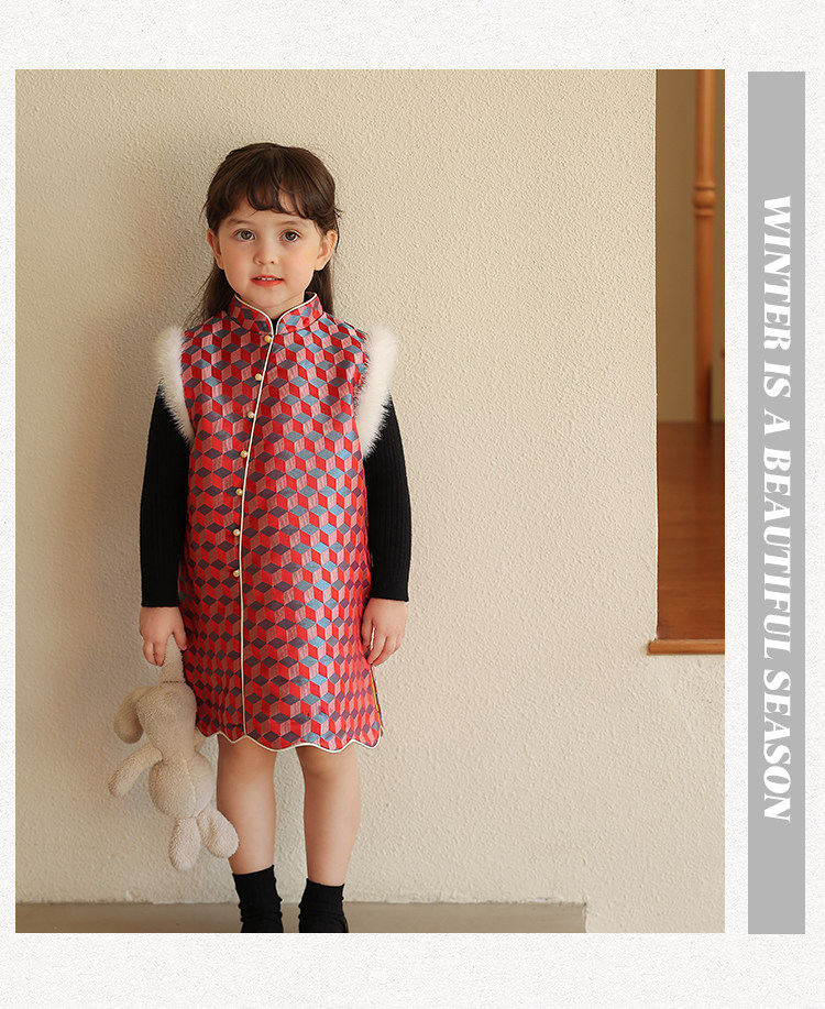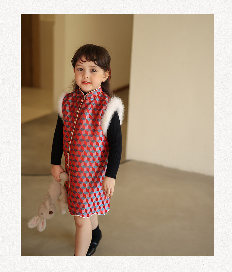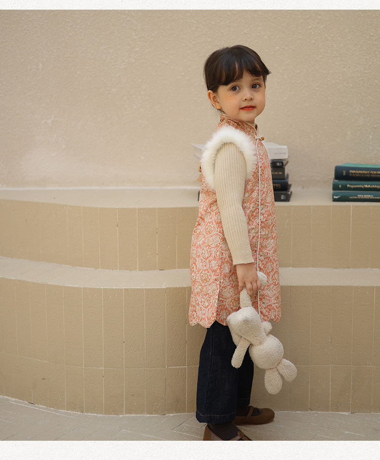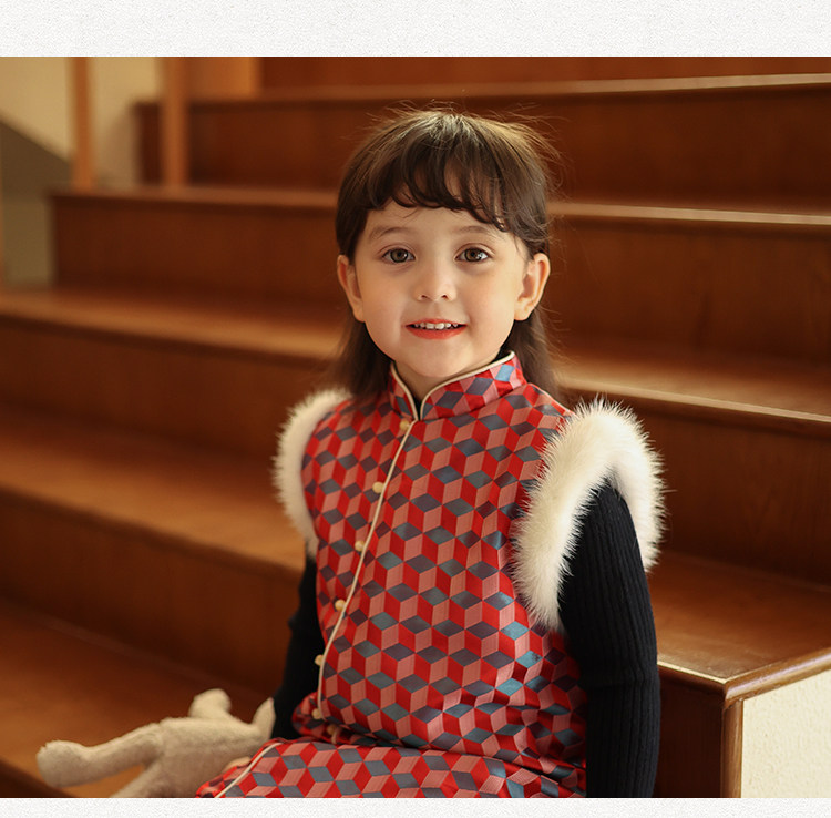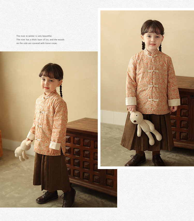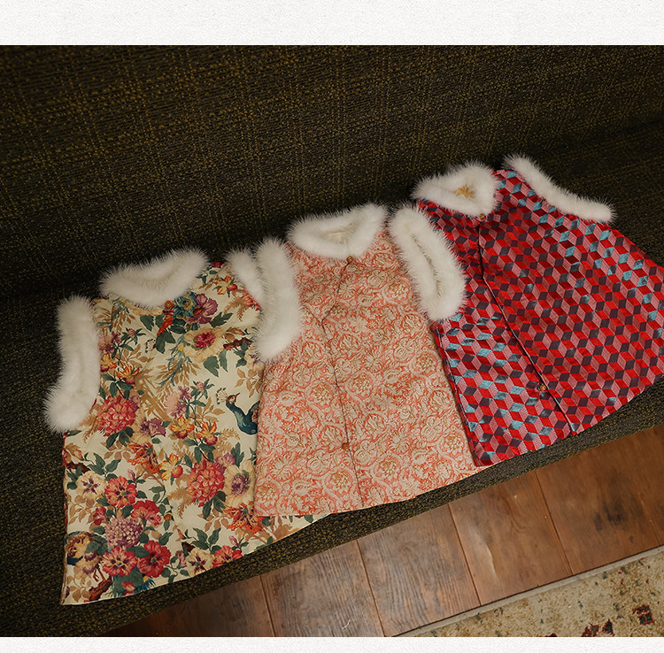 Ципао, жилет, пуховик, детский демисезонный ретро комплект, китайский стиль