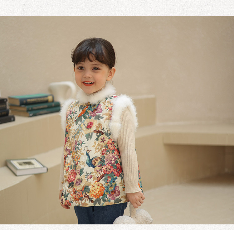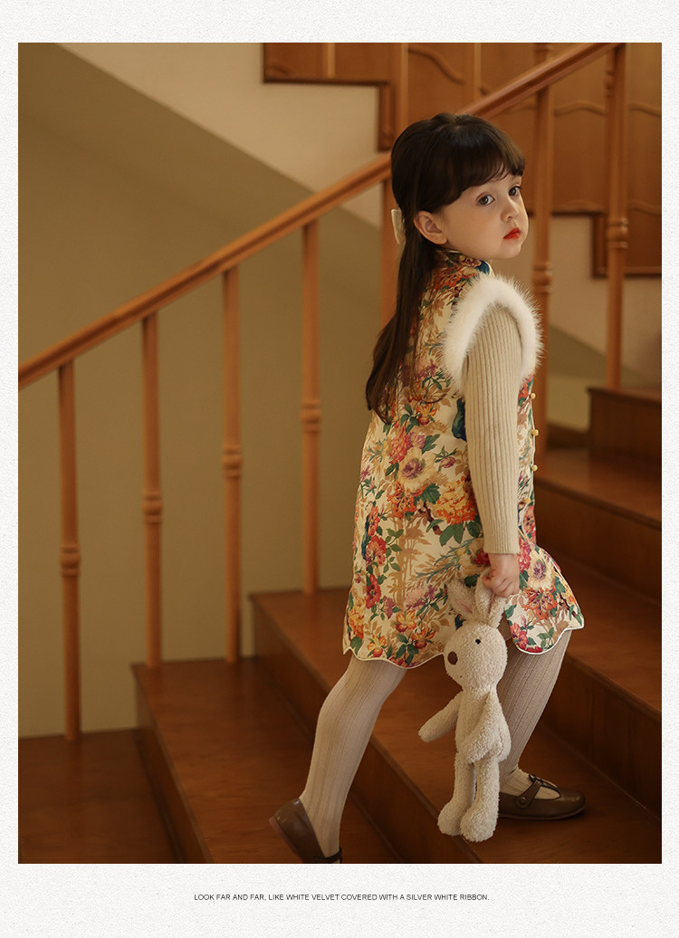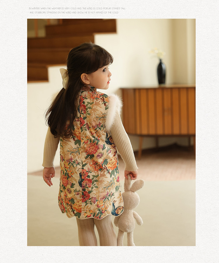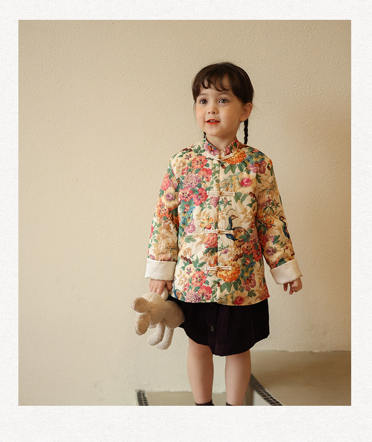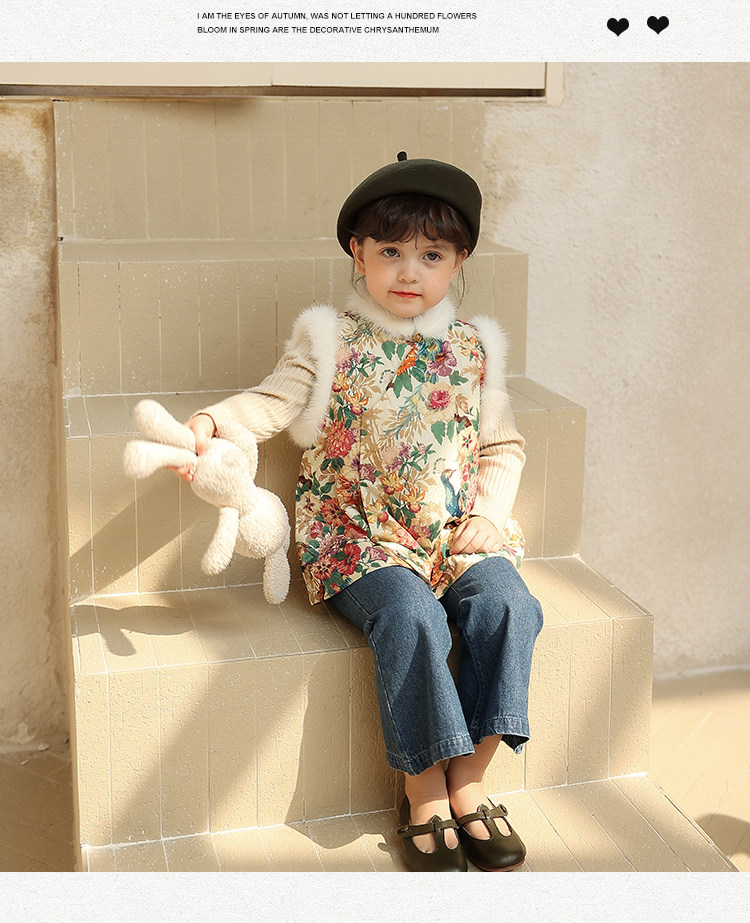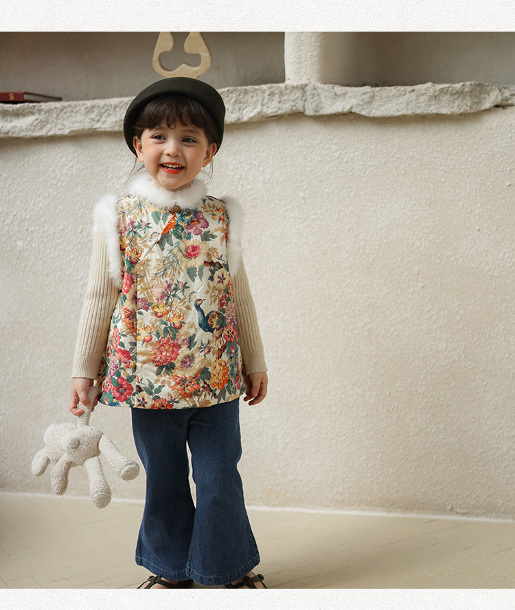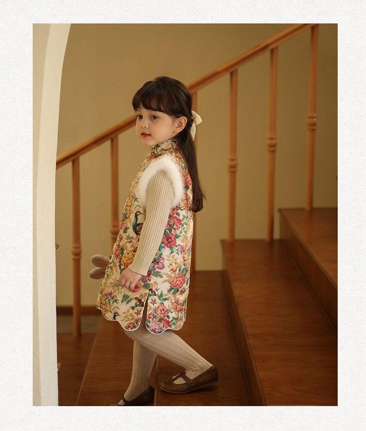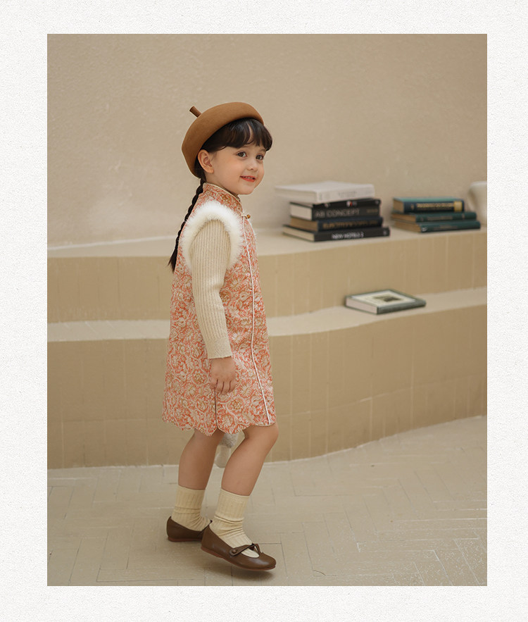 Ципао, жилет, пуховик, детский демисезонный ретро комплект, китайский стиль