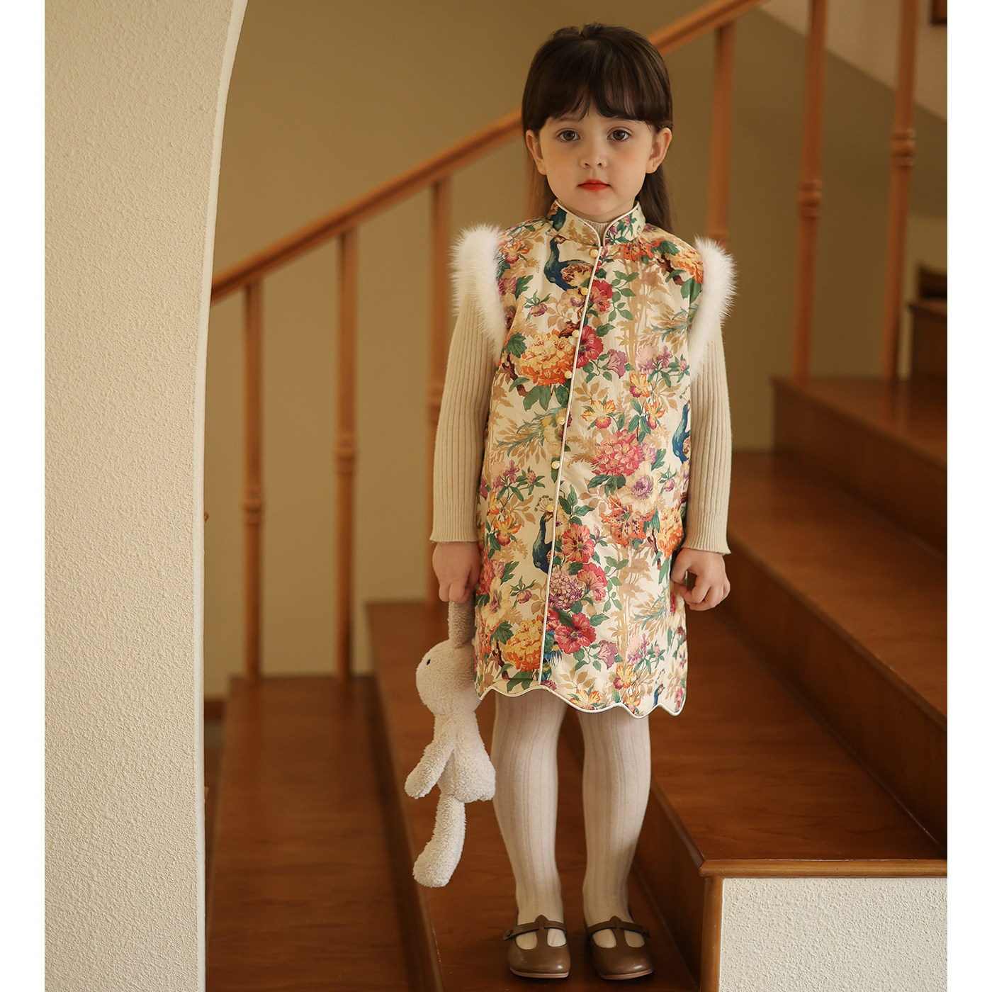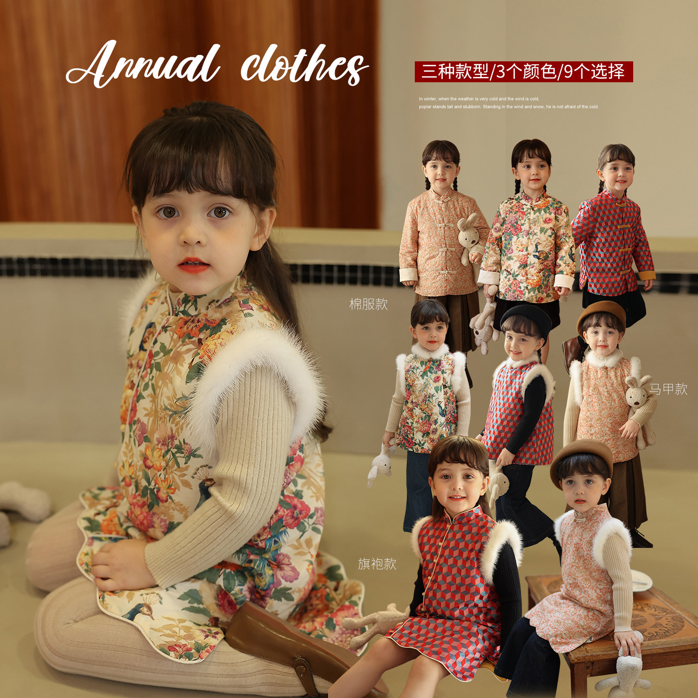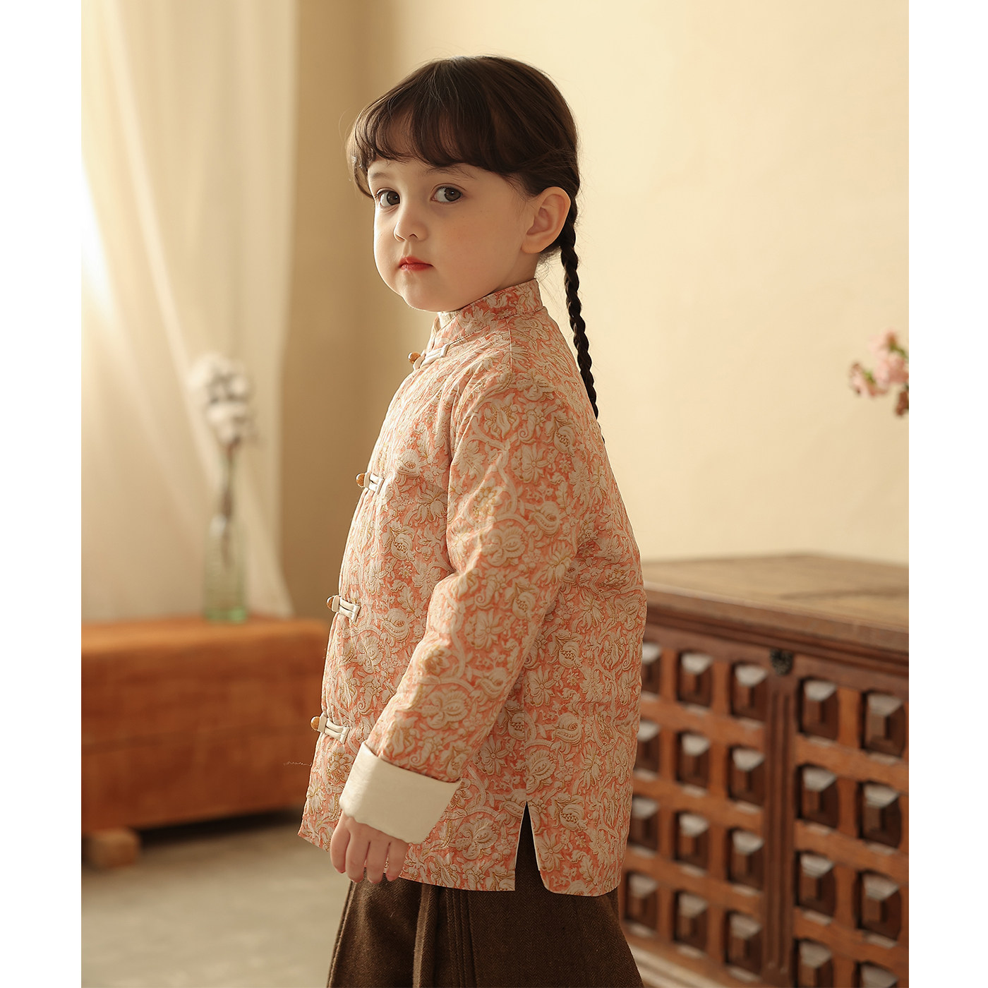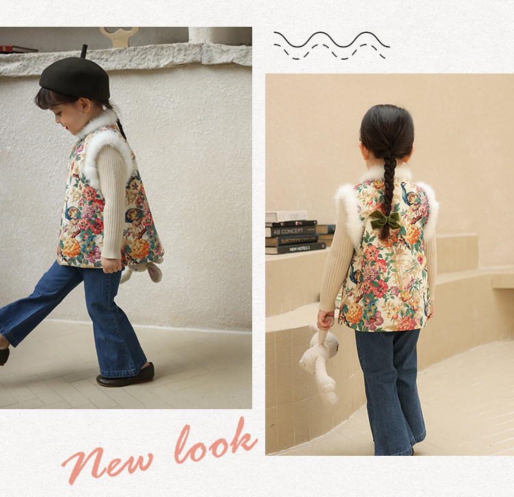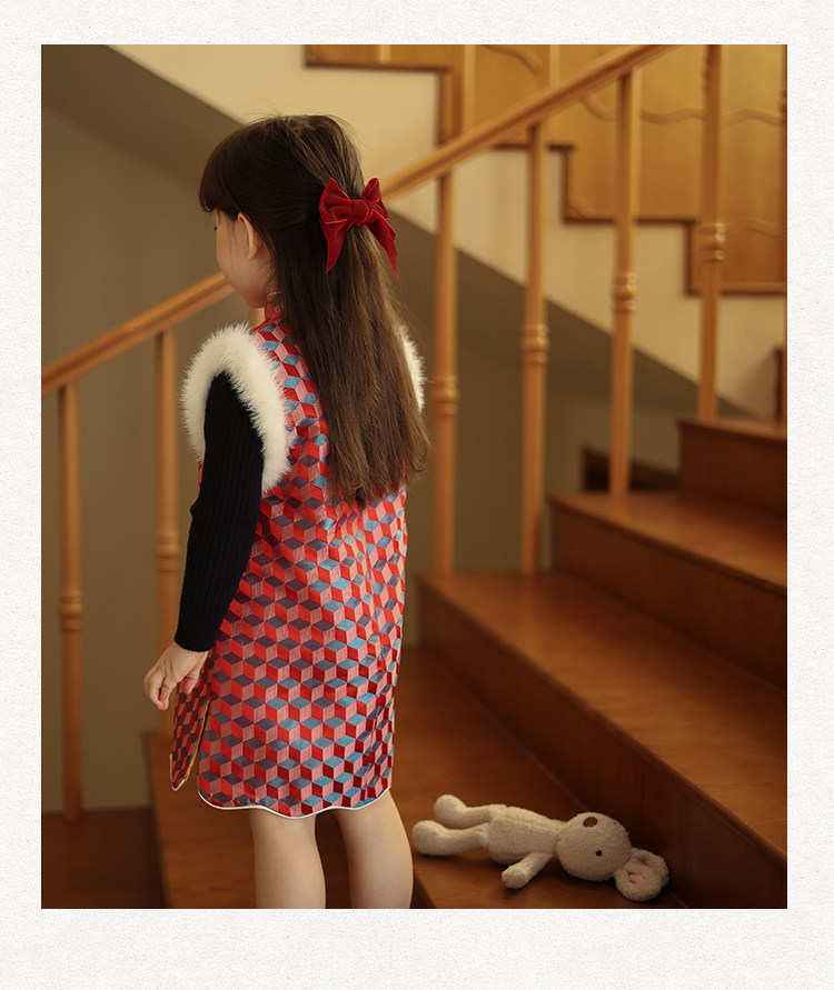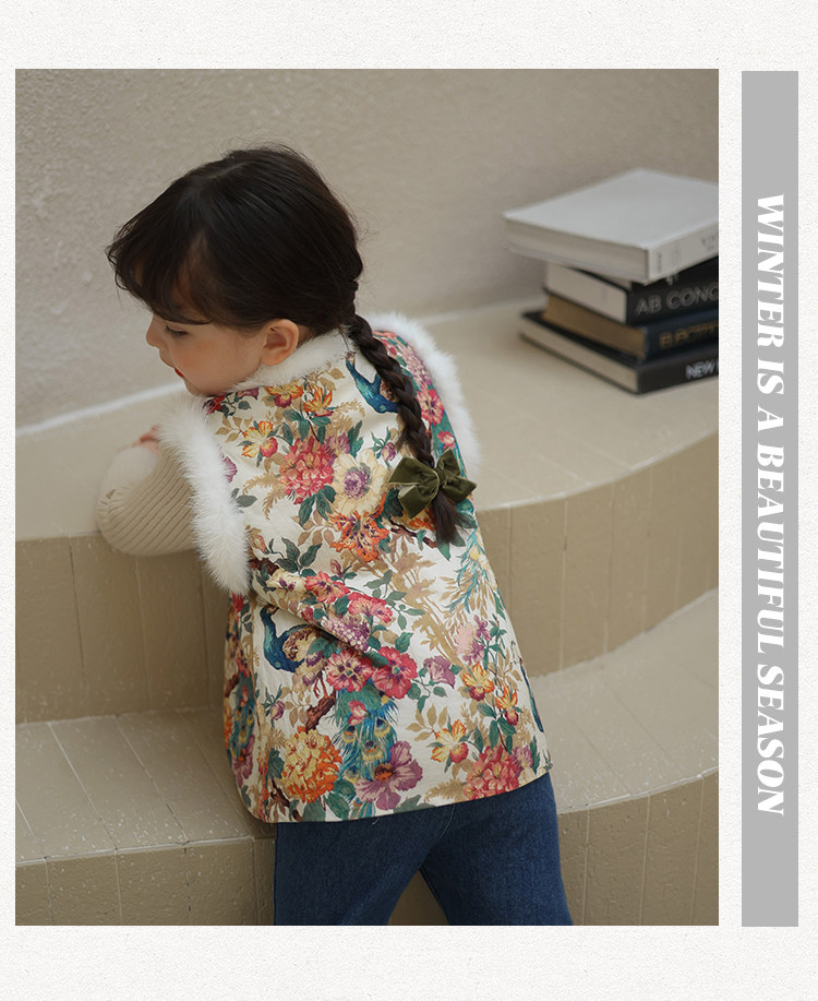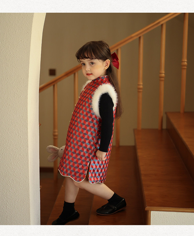Ципао, жилет, пуховик, детский демисезонный ретро комплект, китайский стиль