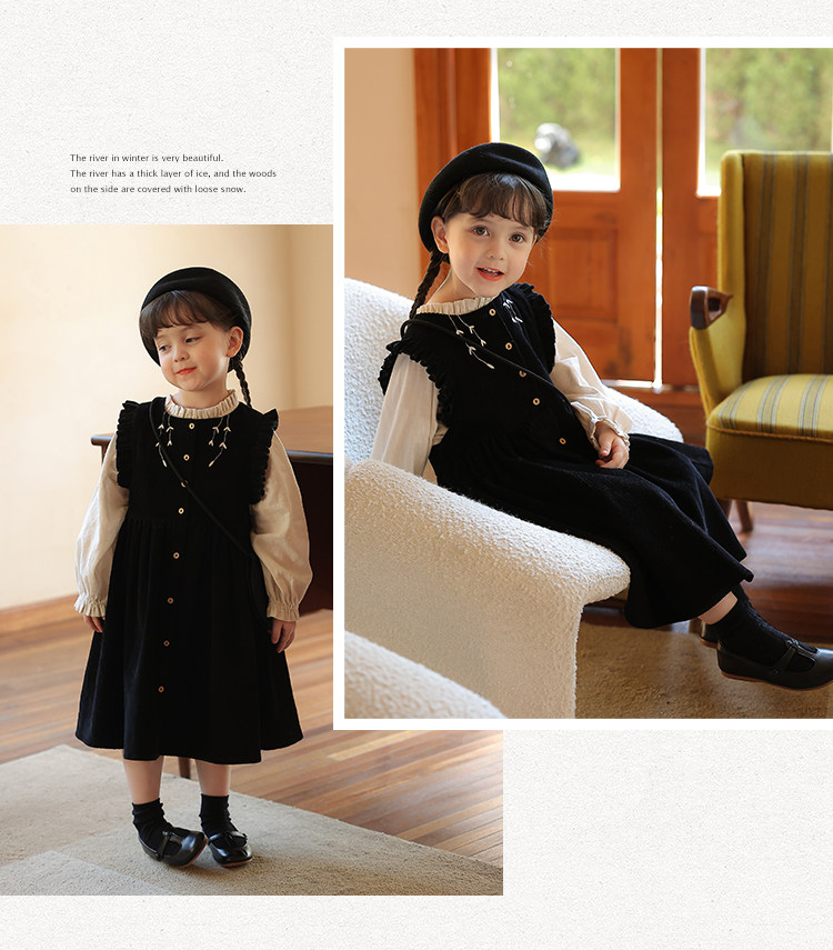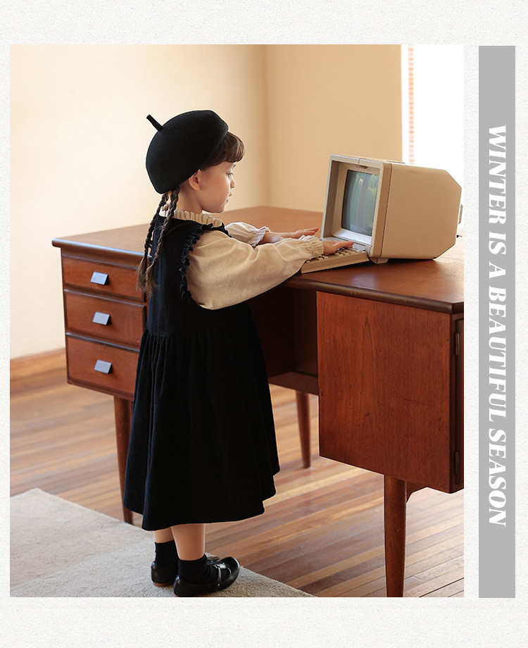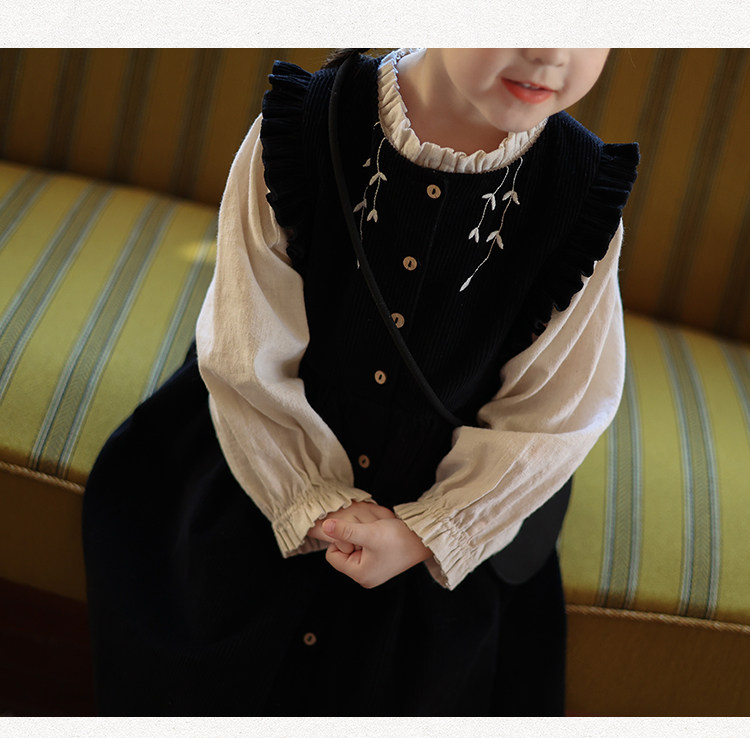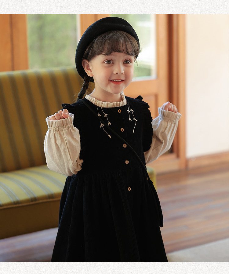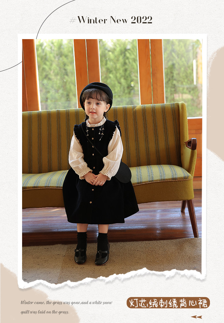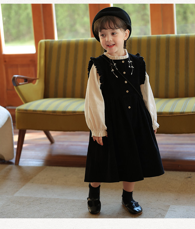 Ретро вельветовый жилет, платье без рукавов, рубашка, детский демисезонный комплект, в западном стиле