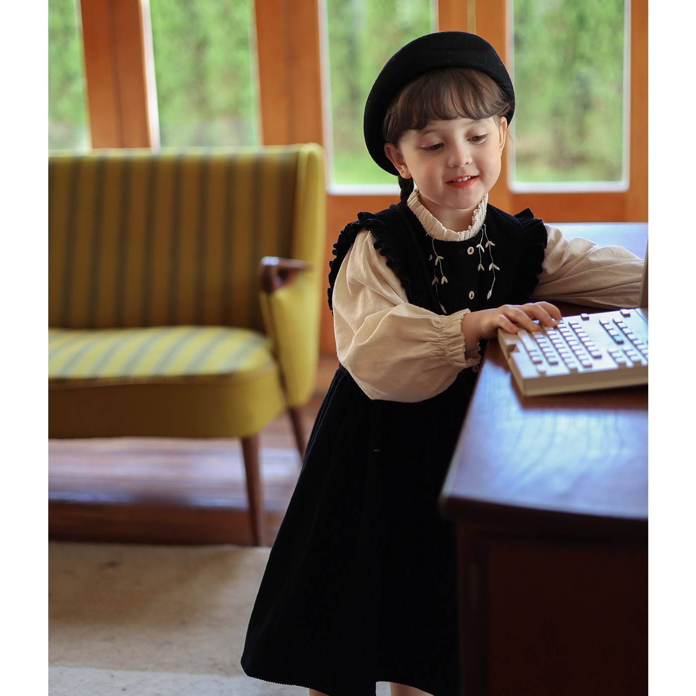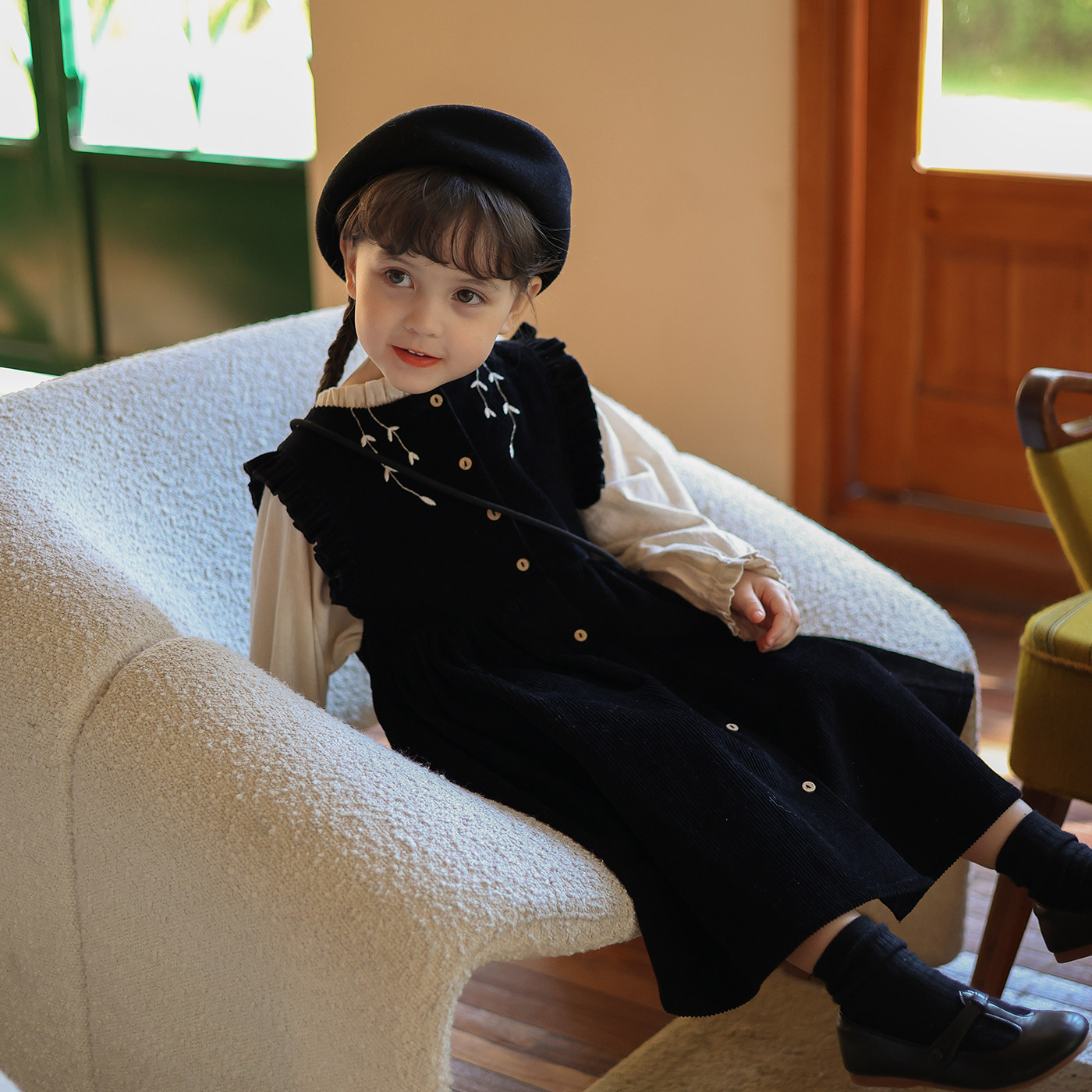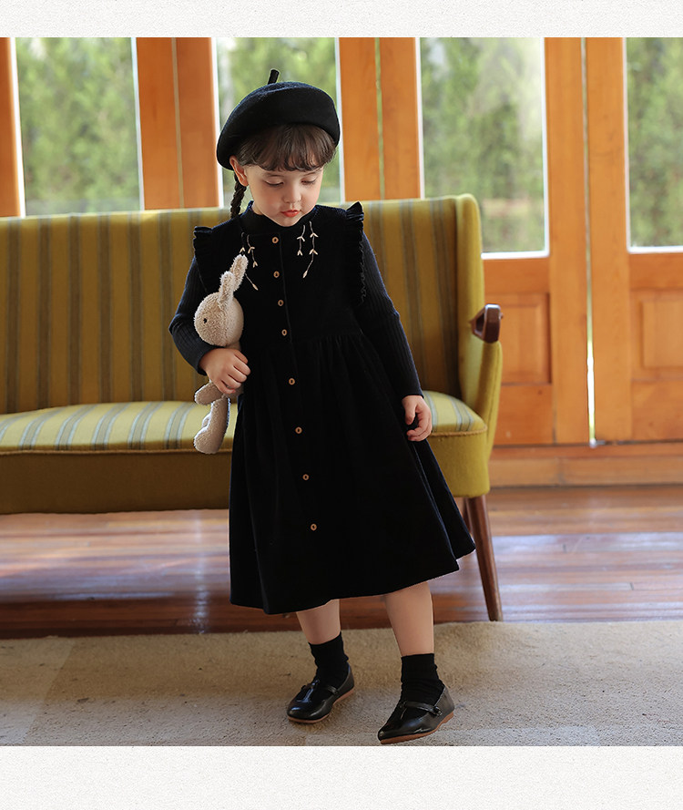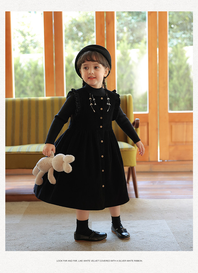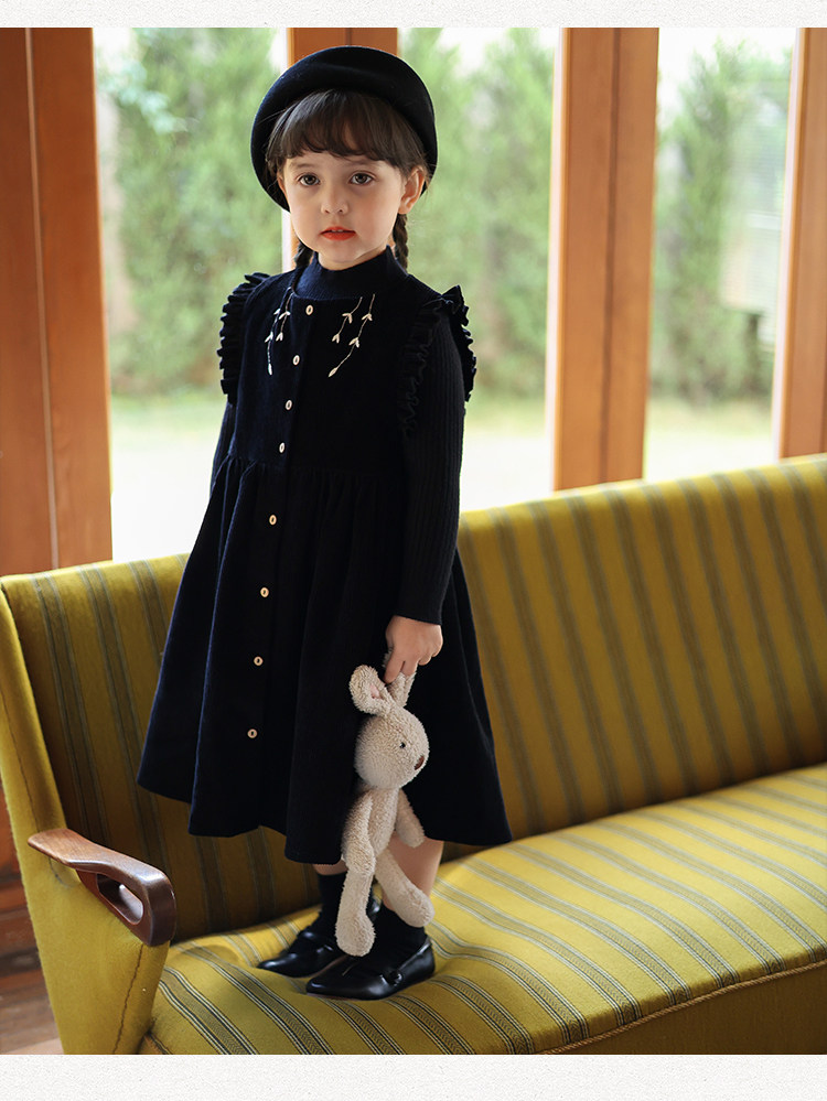 Ретро вельветовый жилет, платье без рукавов, рубашка, детский демисезонный комплект, в западном стиле