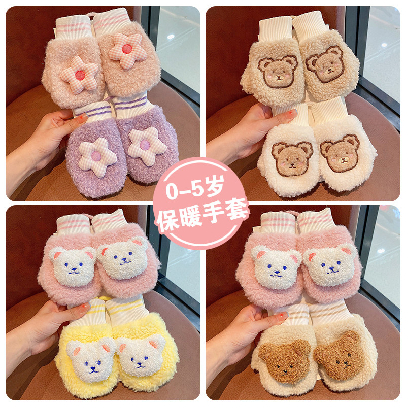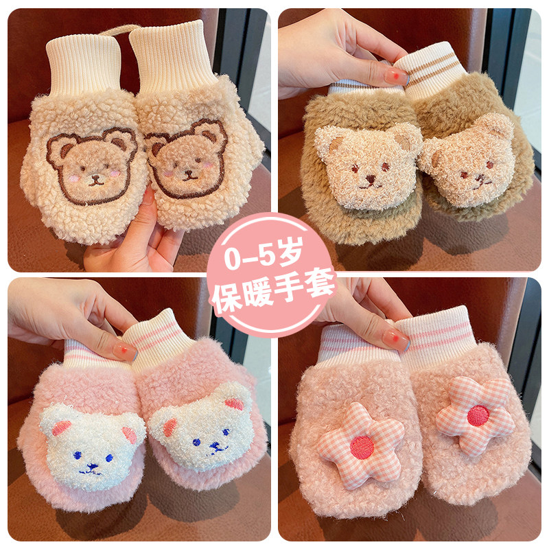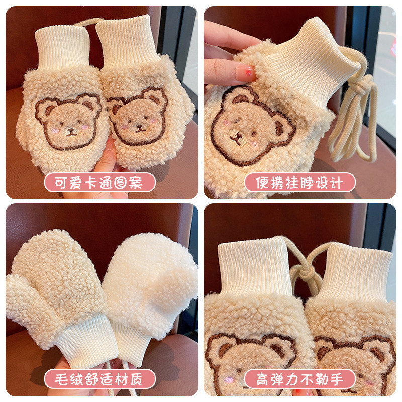 Детские утепленные демисезонные перчатки для раннего возраста, ветрозащитная удерживающая тепло милая детская детская сумка, плюшевые, с медвежатами