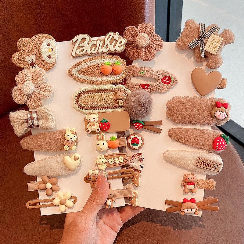 Безвредная заколка для волос, демисезонная плюшевая милая челка, детский кролик, шпильки для волос, в цветочек, не повреждает волосы