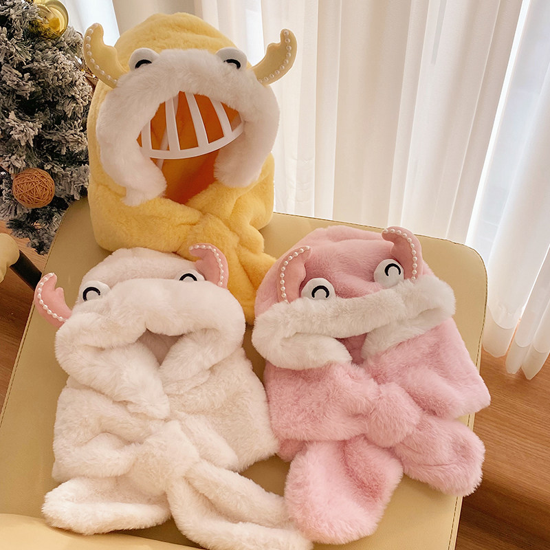 Детская шапка, демисезонный шарф, бархатная милая маска подходит для мужчин и женщин