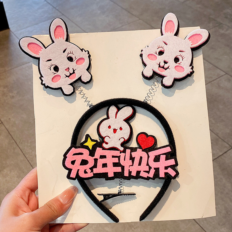 Детский милый кролик, ободок для девочек, трехмерная заколка для волос, аксессуар для волос, год кролика