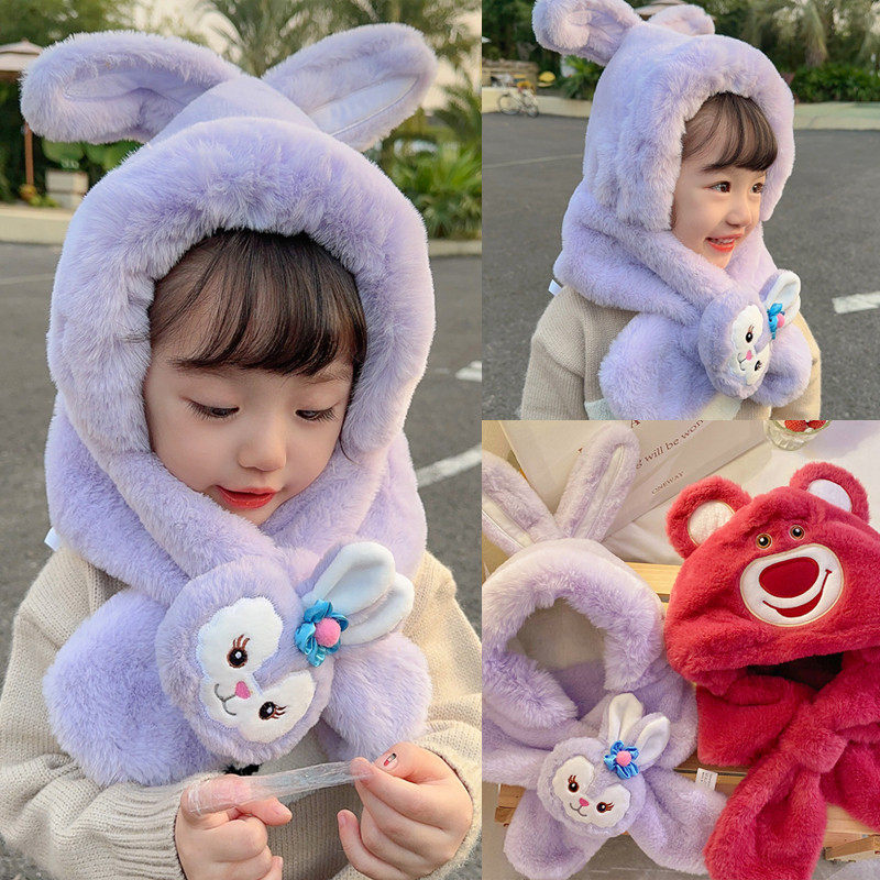 Зимняя детская шапка, шарф с капюшоном, удерживающая тепло клубника