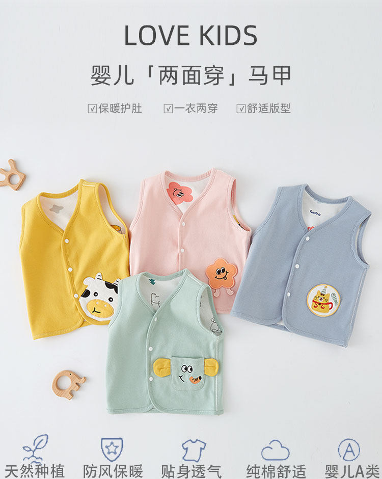 Детский осенний двусторонний хлопковый жилет, комбинезон для мальчиков для девочек для новорожденных, майка топ