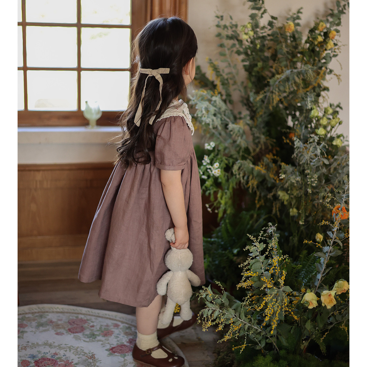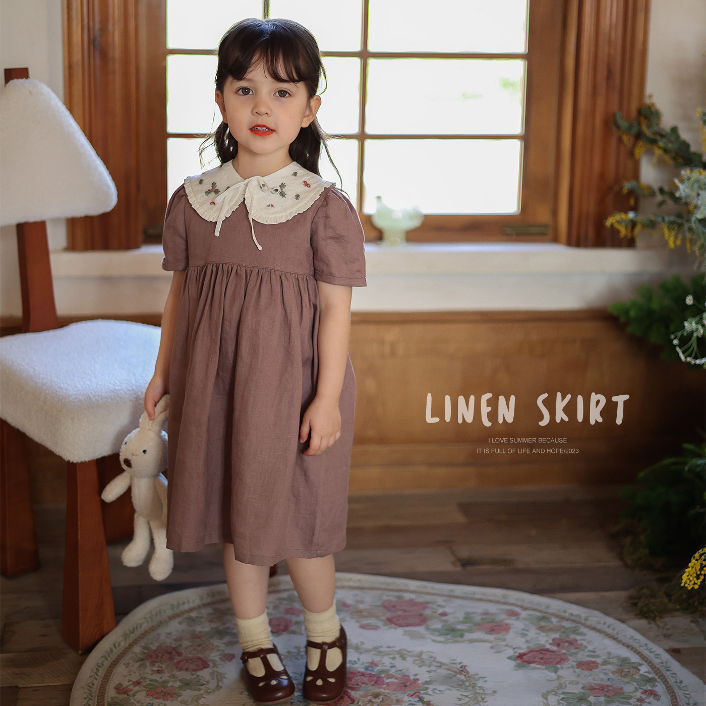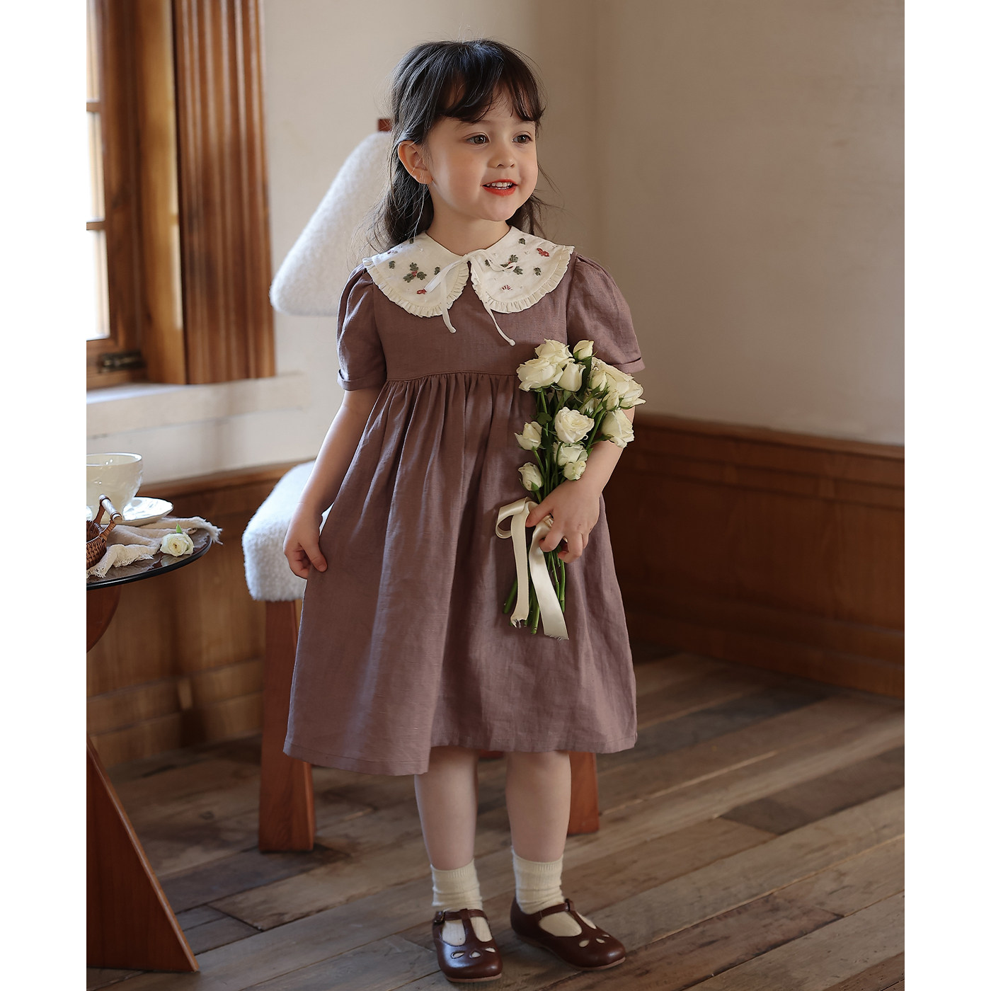 Ретро фальшивый воротник, летнее платье, наряд маленькой принцессы, с вышивкой, короткий рукав