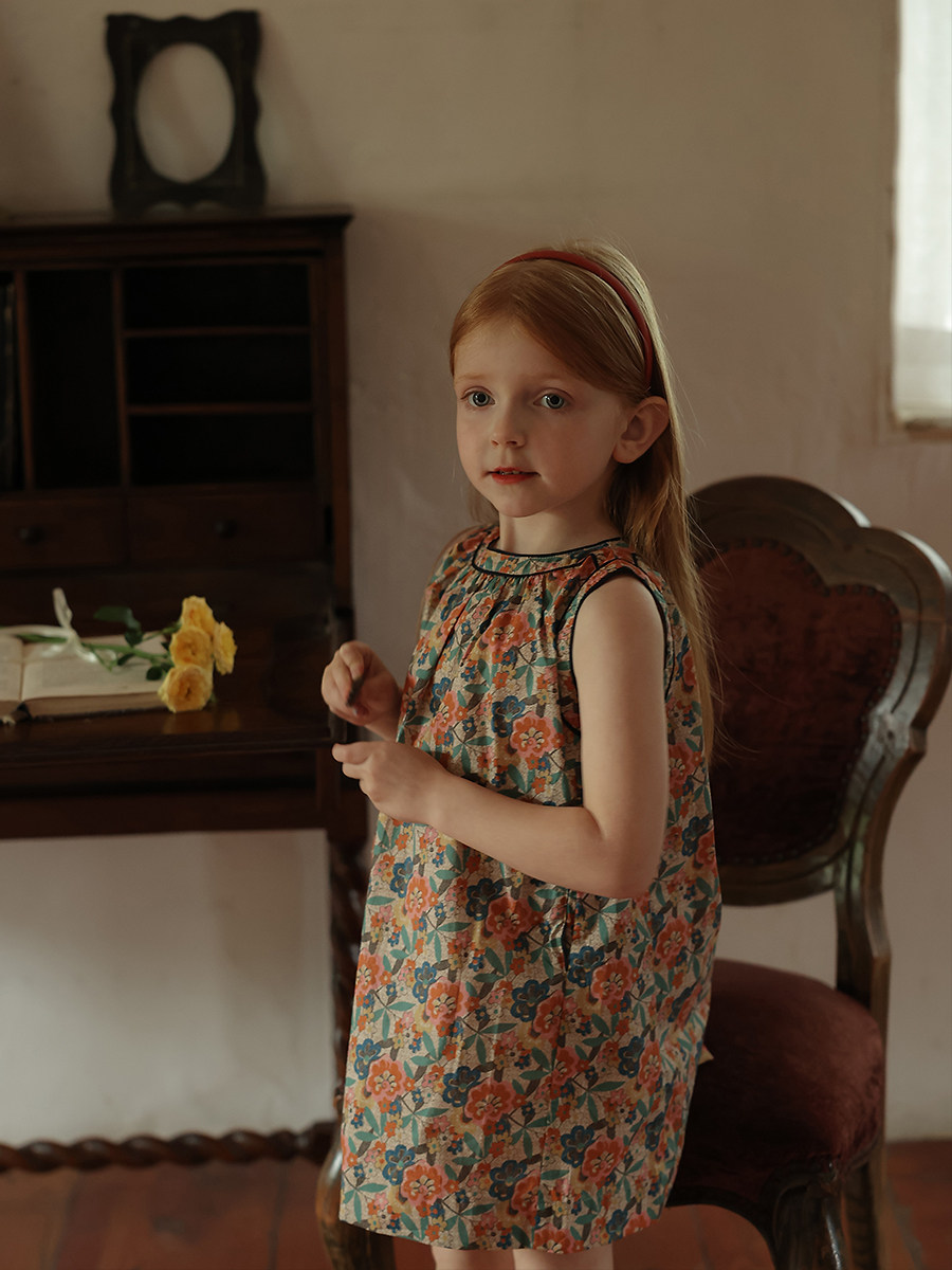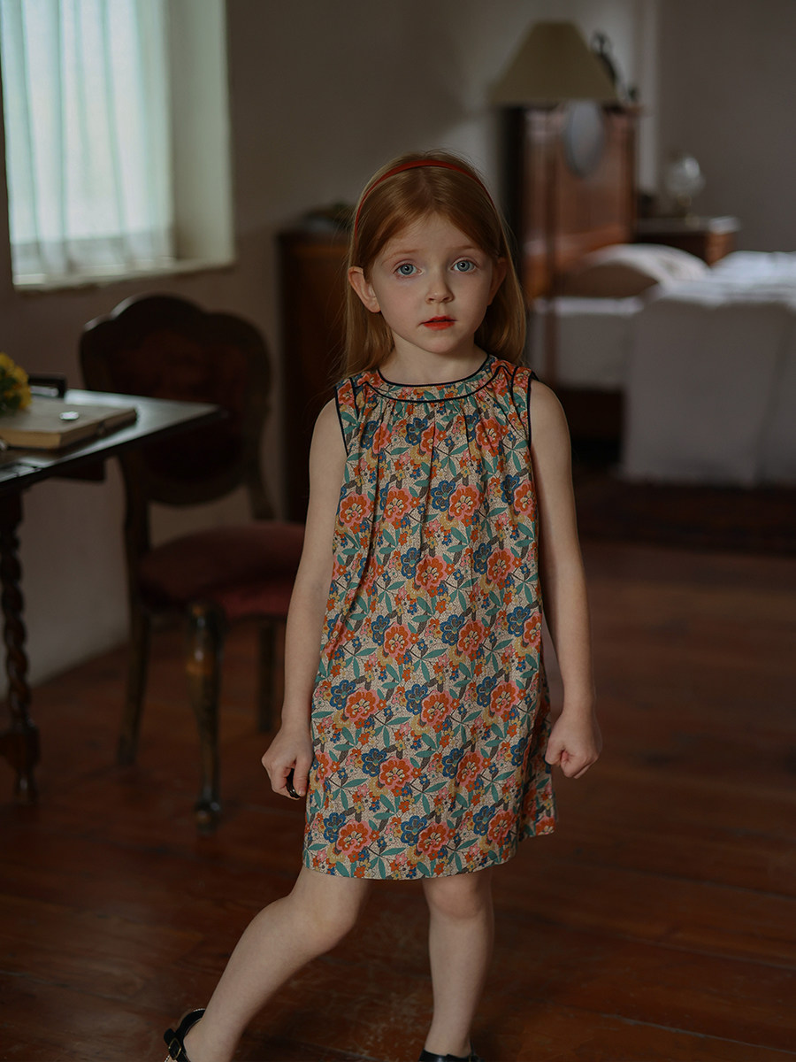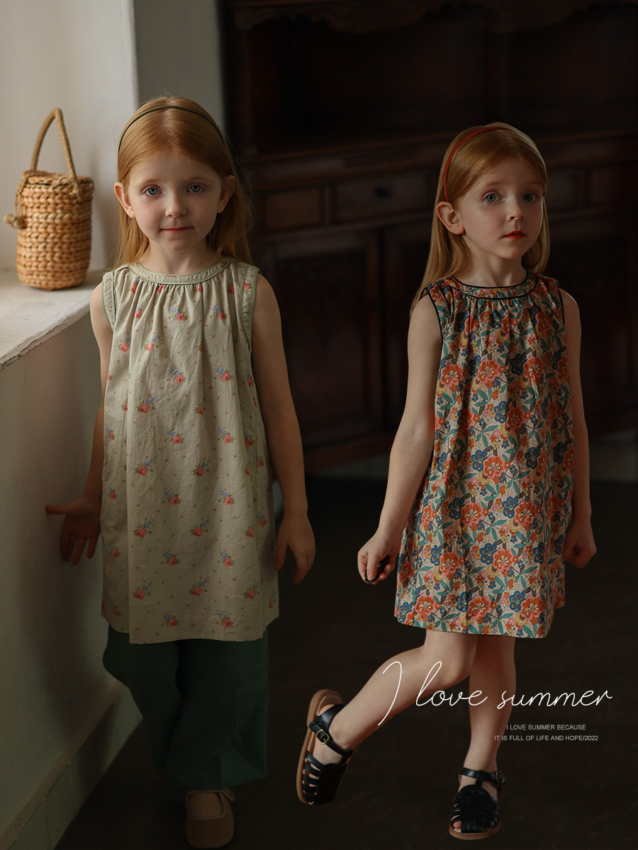 Детское платье без рукавов для раннего возраста, наряд маленькой принцессы, цветочный принт, в западном стиле
