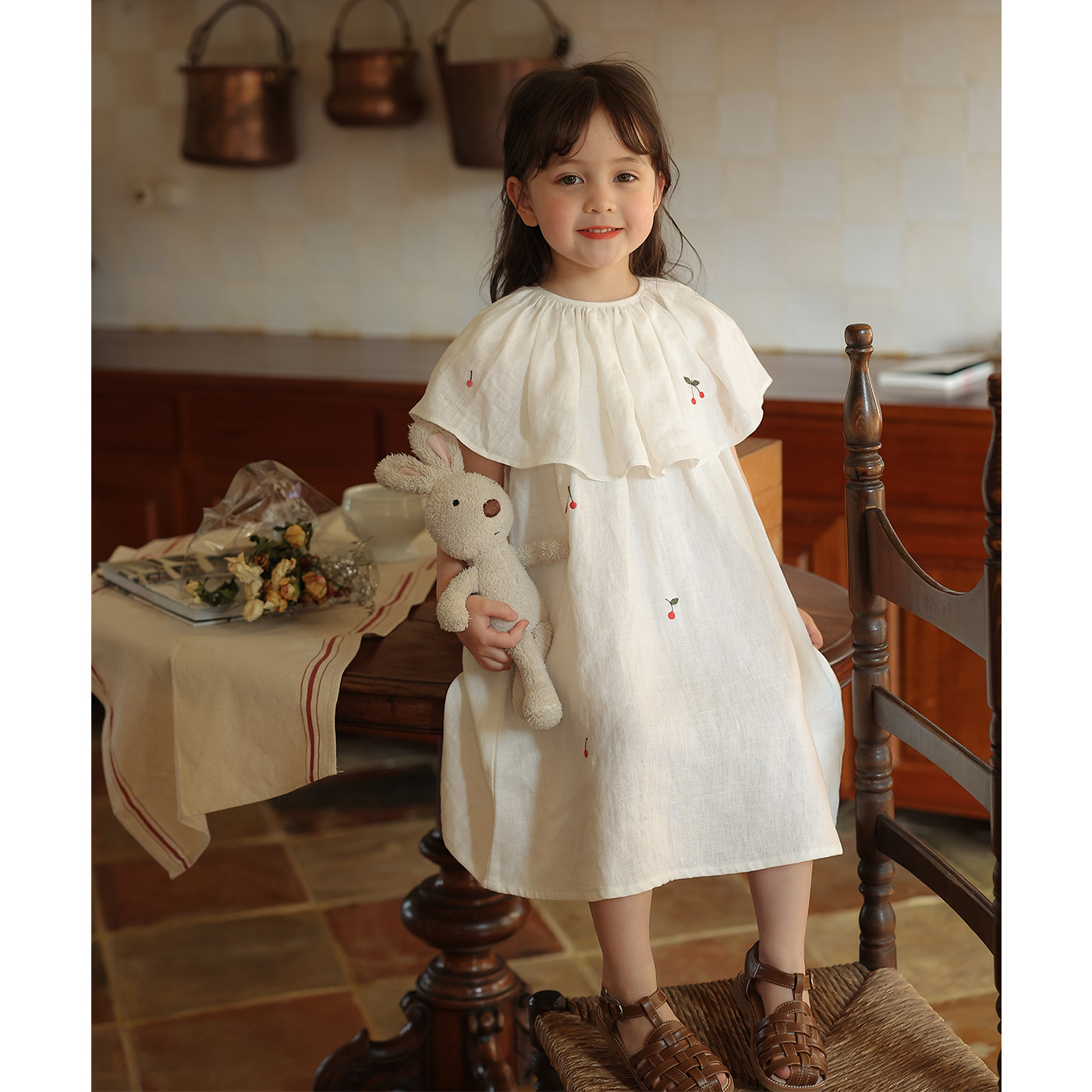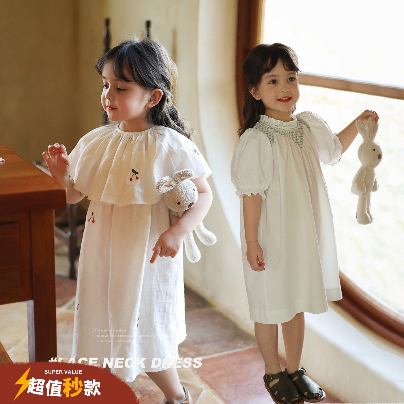 允儿妈 Летний хлопковый наряд маленькой принцессы, детский фальшивый воротник, детская длинная юбка