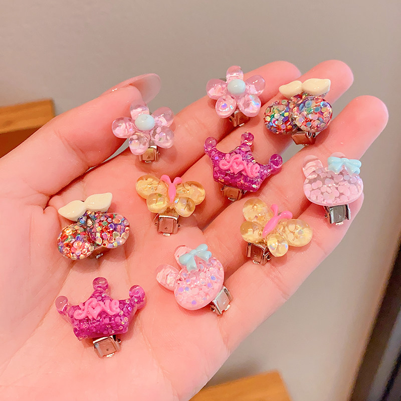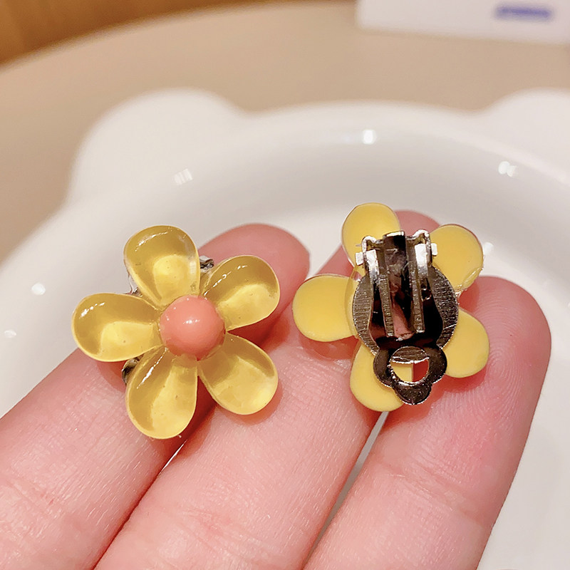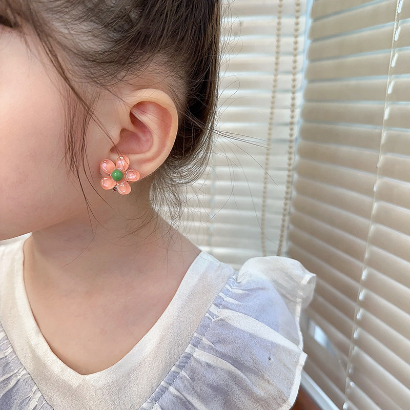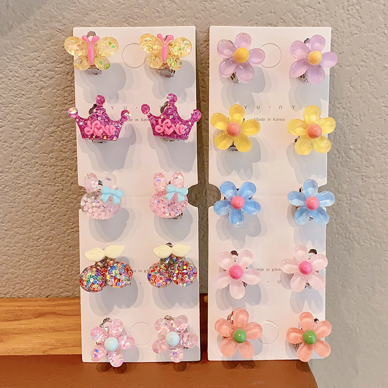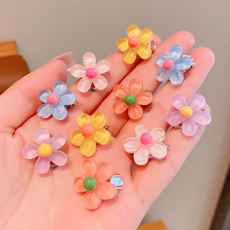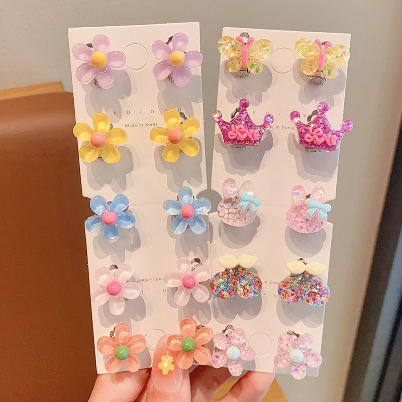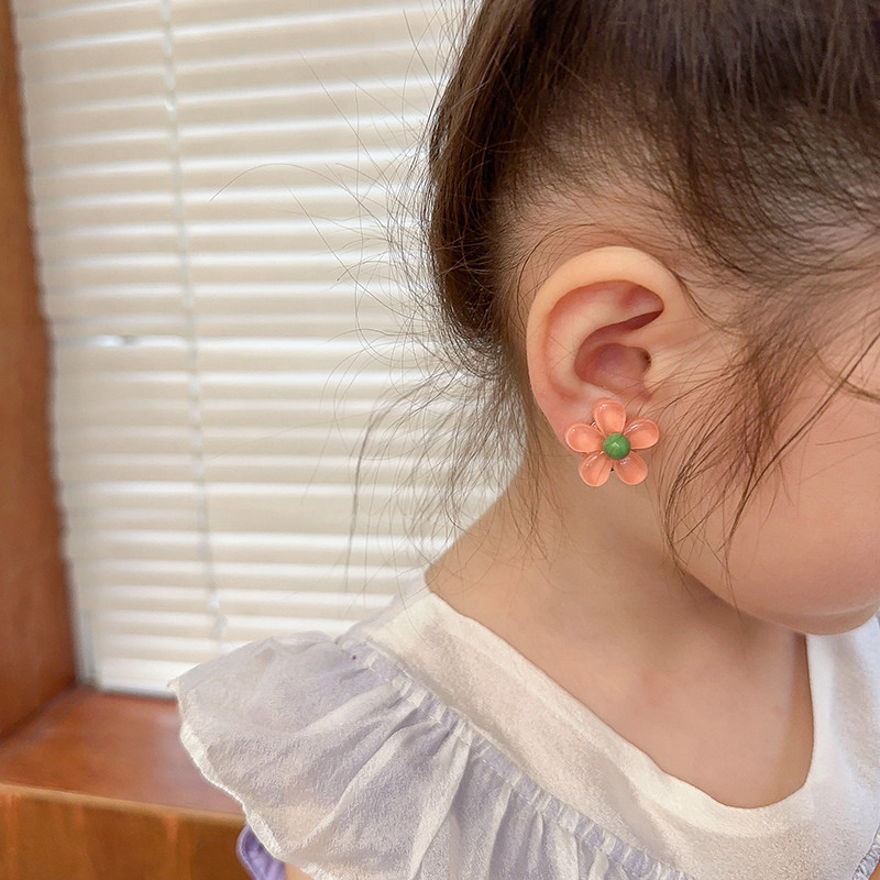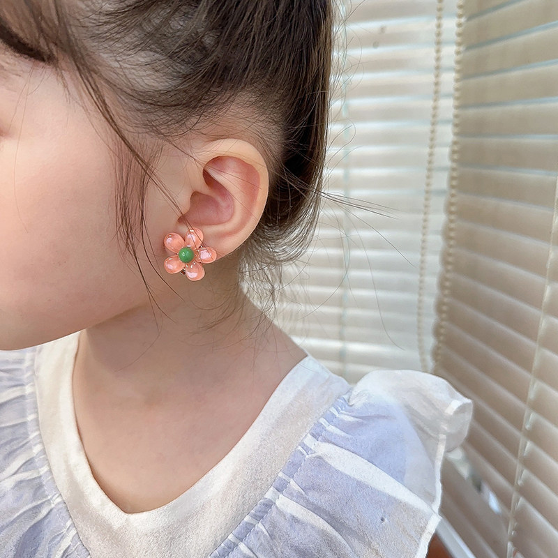 Детские прозрачные клипсы, детский аксессуар, в цветочек, без проколов ушей