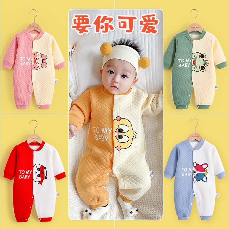 Детские осенние хлопковые штаны, зимнее удерживающее тепло детское боди для новорожденных