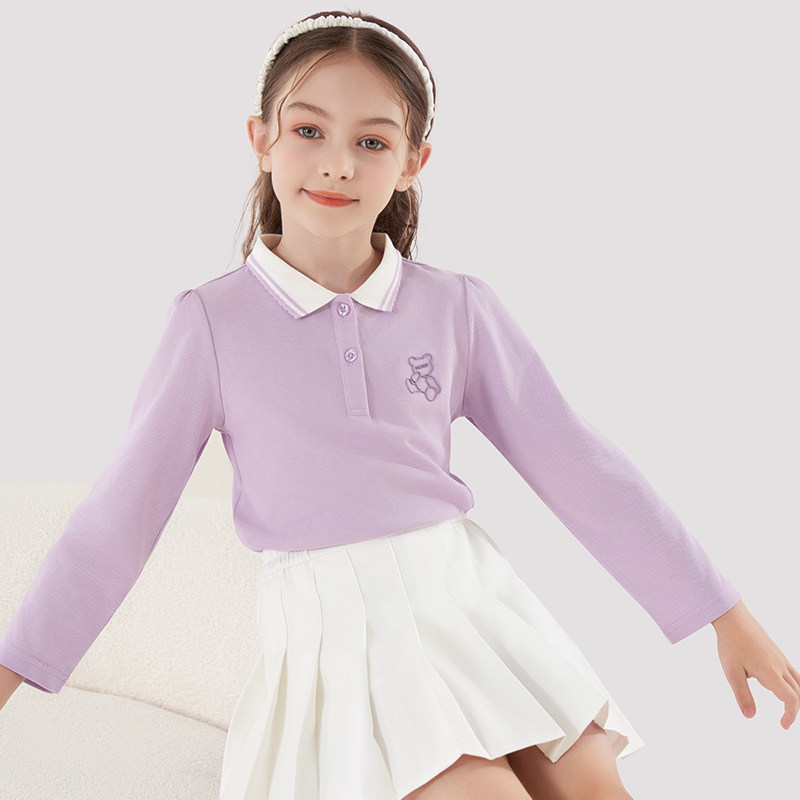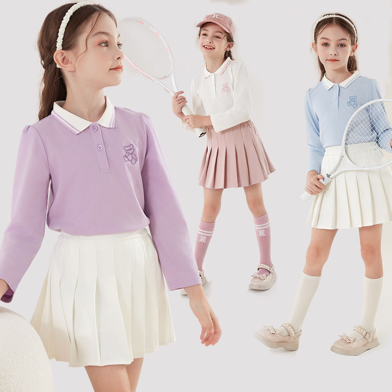 Осенний лонгслив, детская базовая приятная телу футболка polo, подходит для подростков, в западном стиле, детская одежда