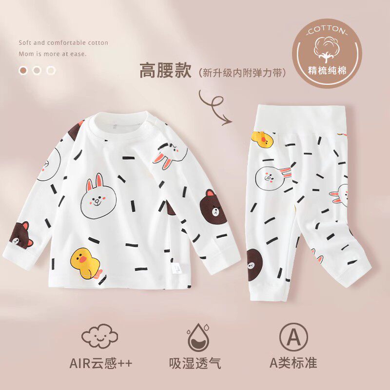 Детское хлопковое термобелье, бандаж пупочный, детский комплект для мальчиков, удерживающее тепло нижнее белье, пижама, высокая талия