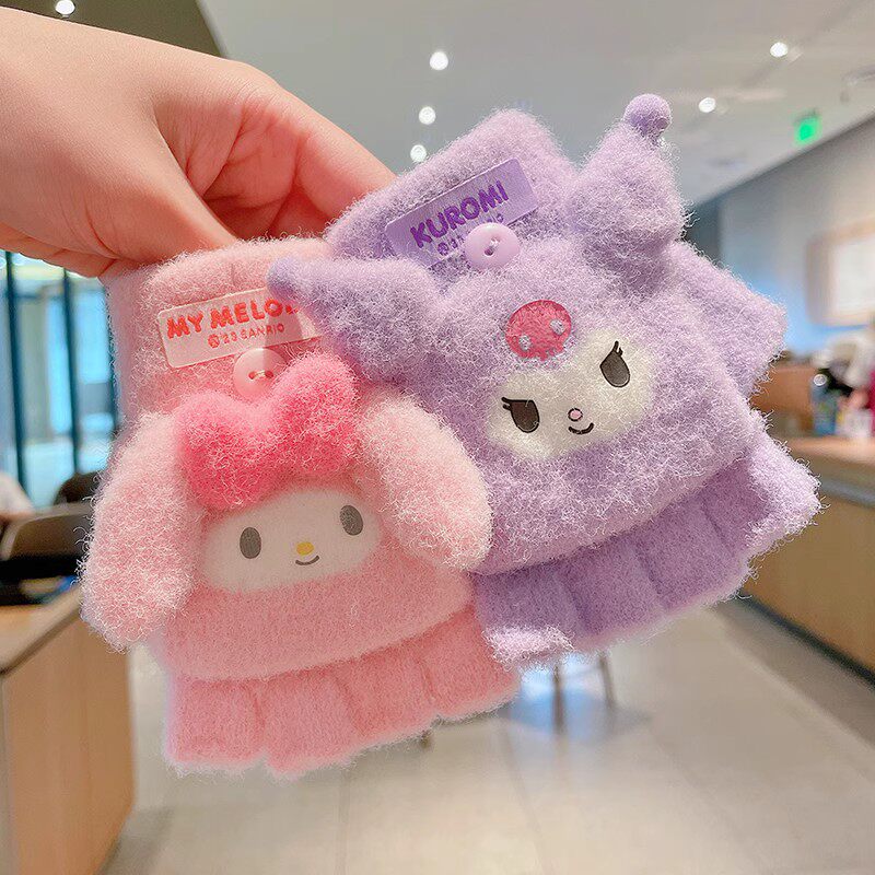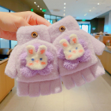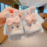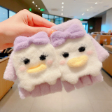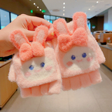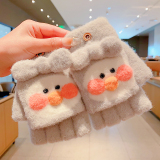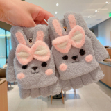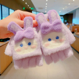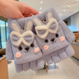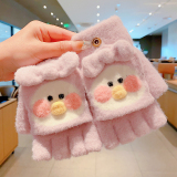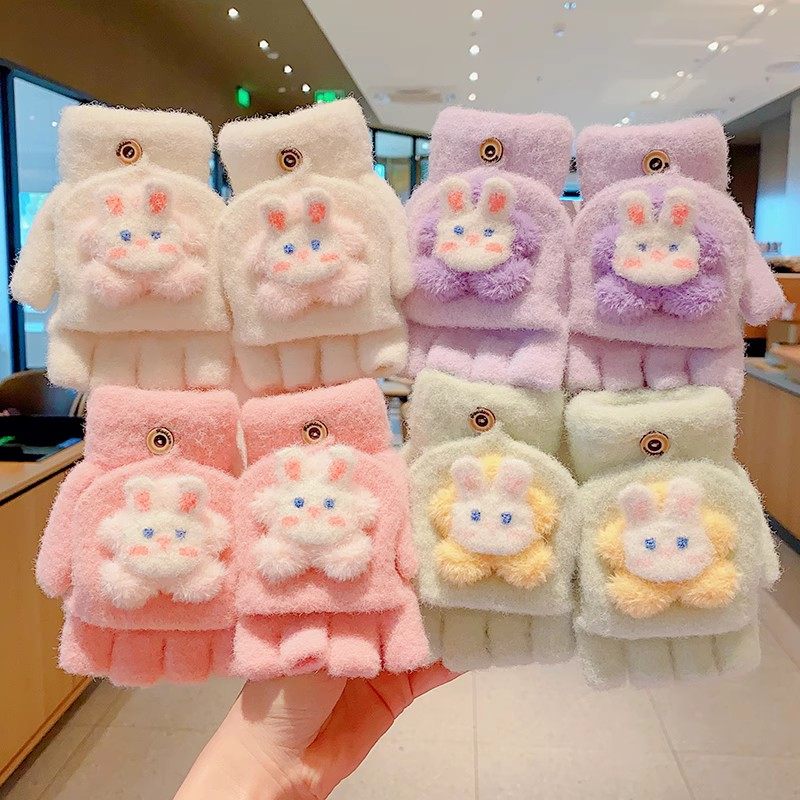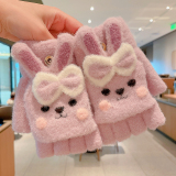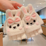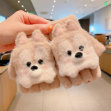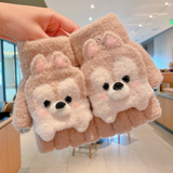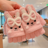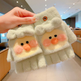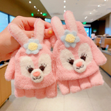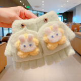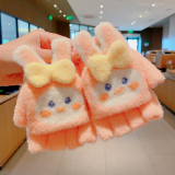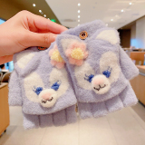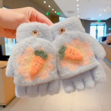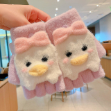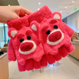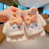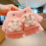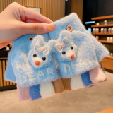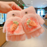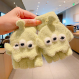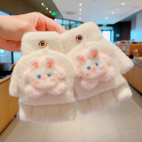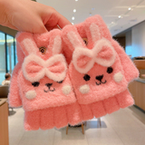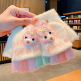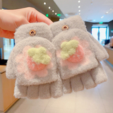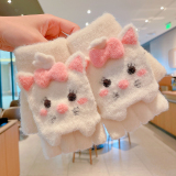 Утепленные удерживающие тепло детские мультяшные демисезонные милые флисовые перчатки, без пальцев