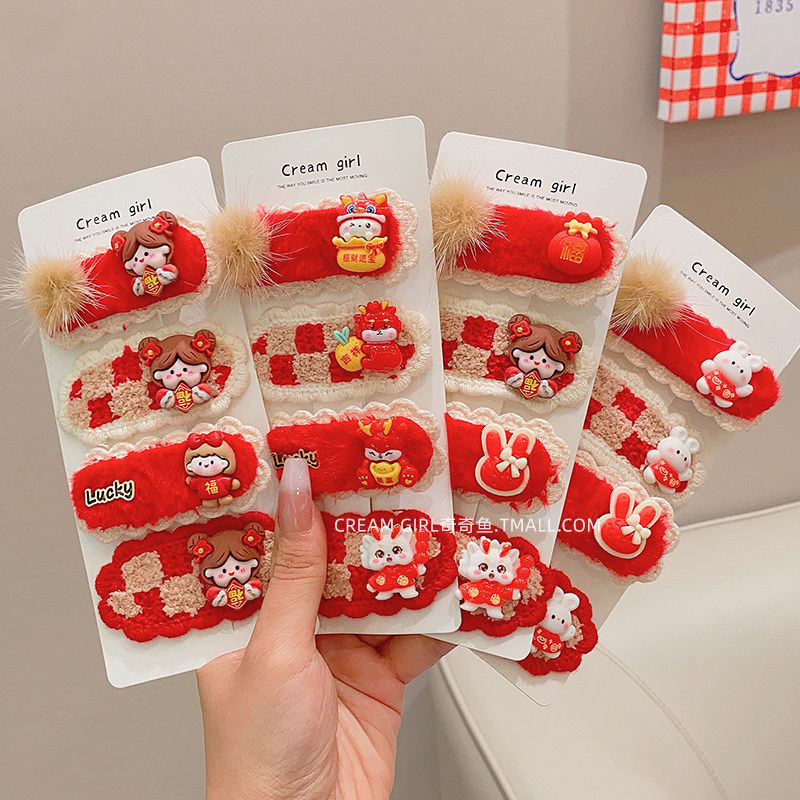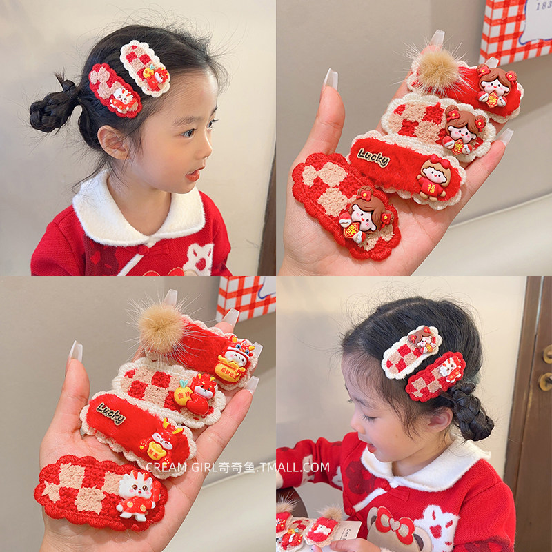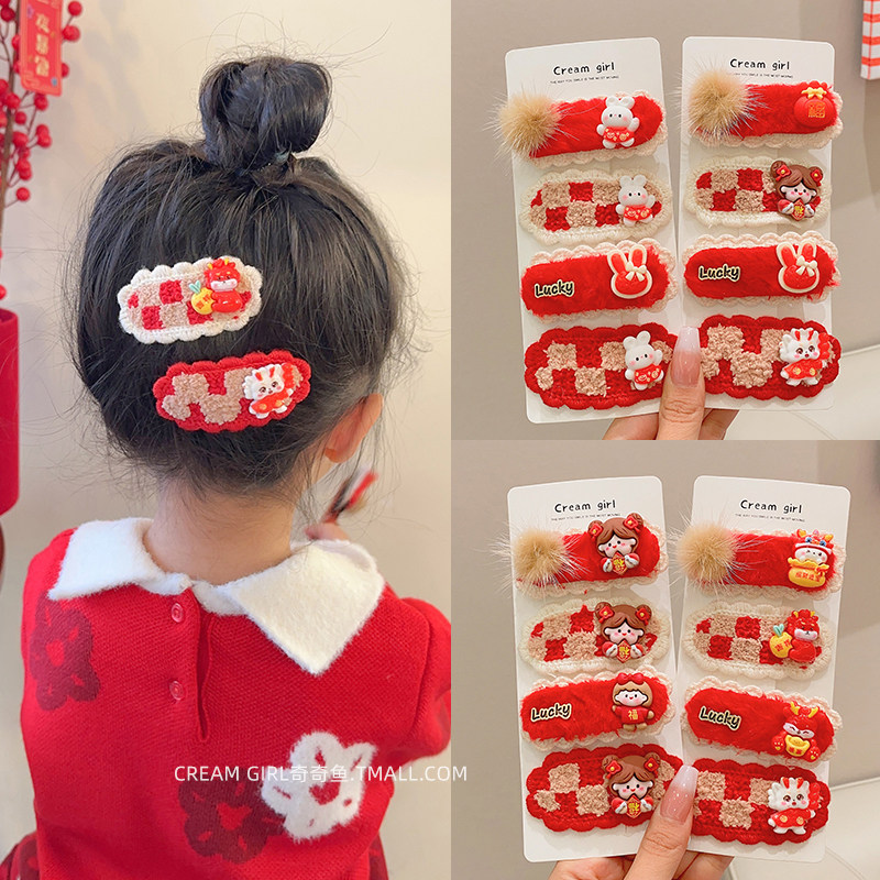 Детские красные праздничнные шахматы, кролик, шпильки для волос, заколка для волос