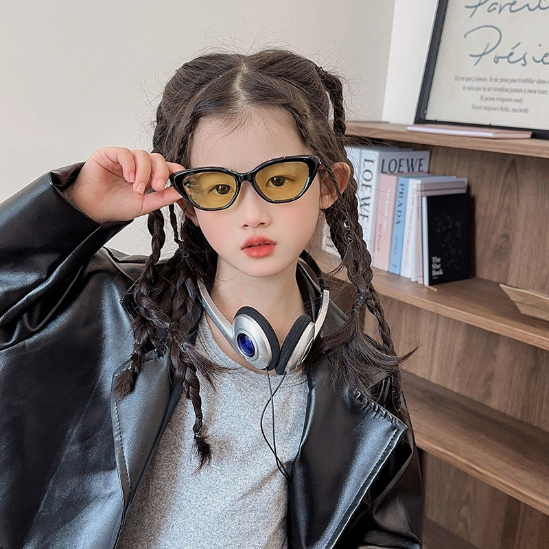 Черные детские летние модные солнцезащитные очки подходит для мужчин и женщин, в корейском стиле, кошачий глаз, защита от ультрафиолета