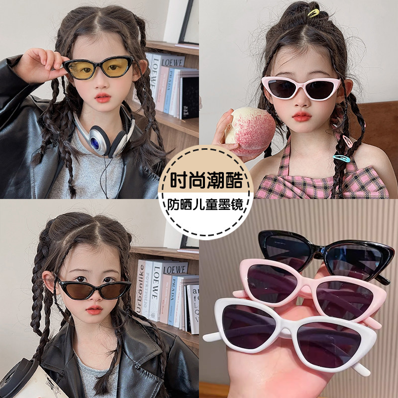 Черные детские летние модные солнцезащитные очки подходит для мужчин и женщин, в корейском стиле, кошачий глаз, защита от ультрафиолета
