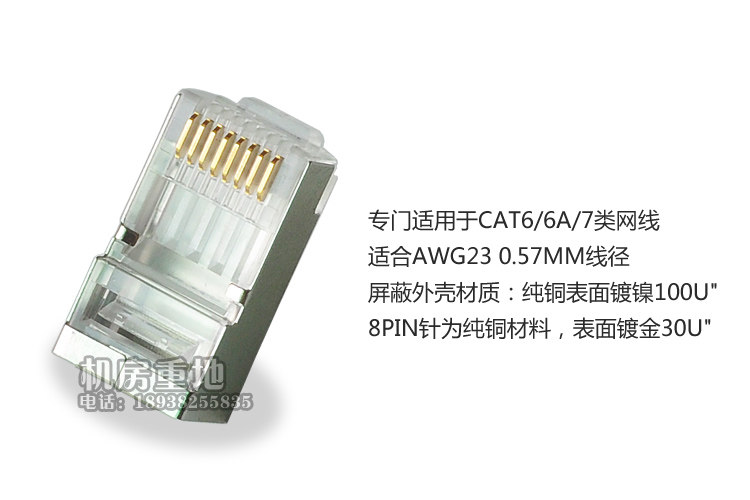 Super Six Crystal Head Plus оболочка Большой диаметр отверстия подходит для Cat6/6A/7 AWG23 0,57 мм сетка