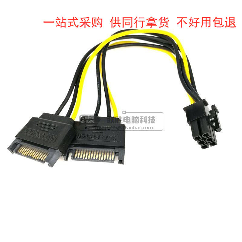6pin графическая карта. Линия подачи проволоки, одна точка, два двойных источника питания SATA с 15pin до 6p графики обратной линии электроэнергии 15 стежков