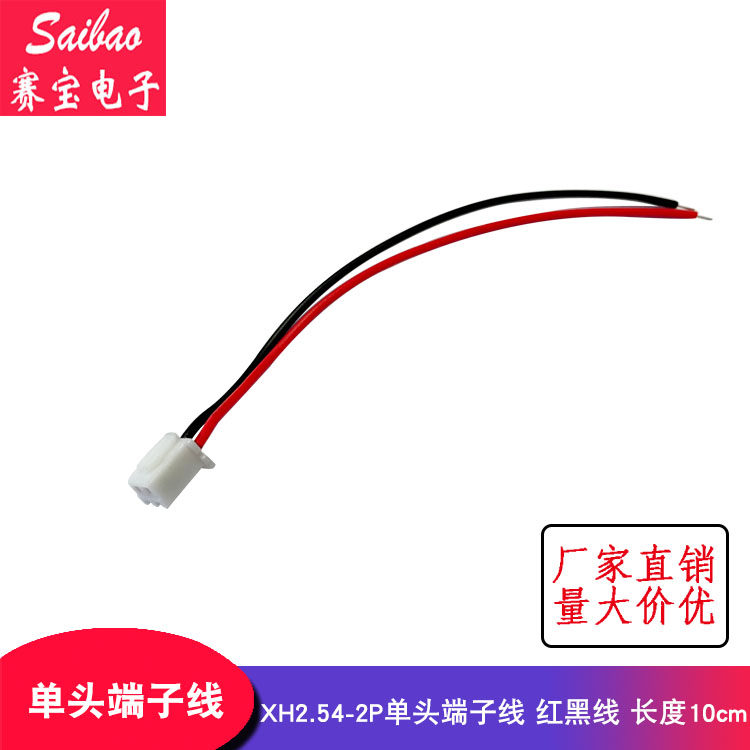 Красная и черная монокулярная линия клемма XH2.54-2P Компьютерный кабельный луч 2,54 мм расстояние 2p Длина 10 см (10 штук/пакет)