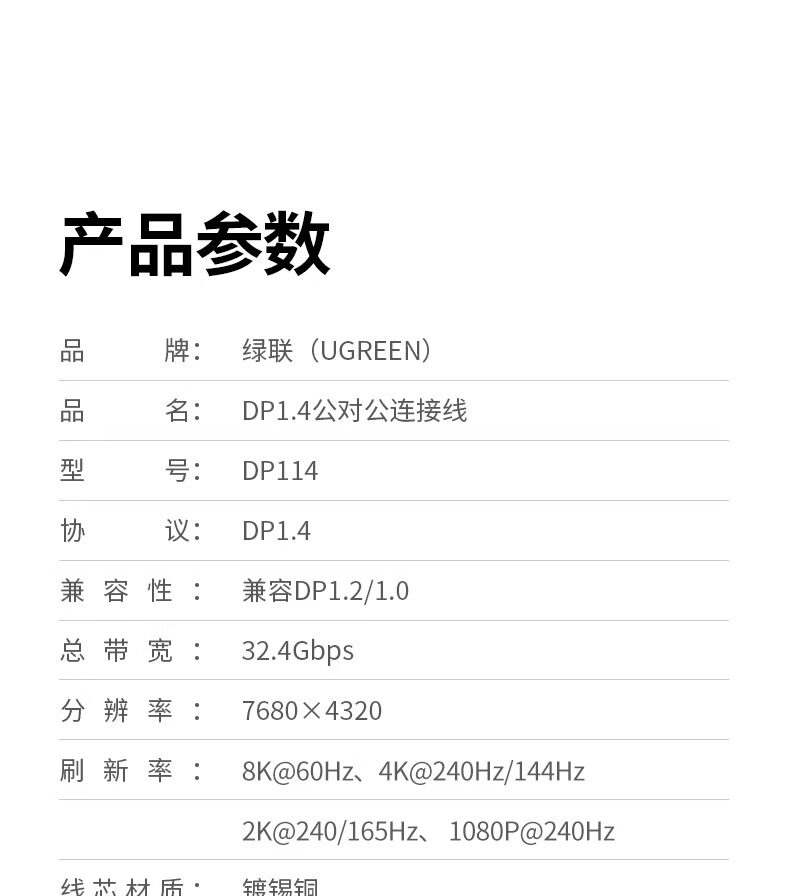 Линия Green Union DP Line 1.4 HD Data Cable 8K Computer Display 1.2 Подключение 144 плюс линия расширения DP 165 Гц