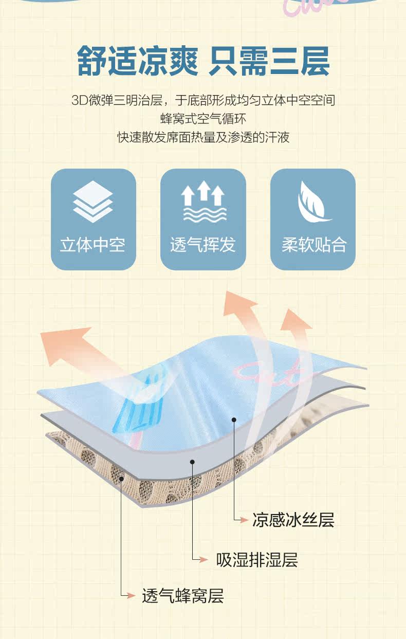 博洋 Шелковый коврик для школьников, летний складной комплект, 3 предмета
