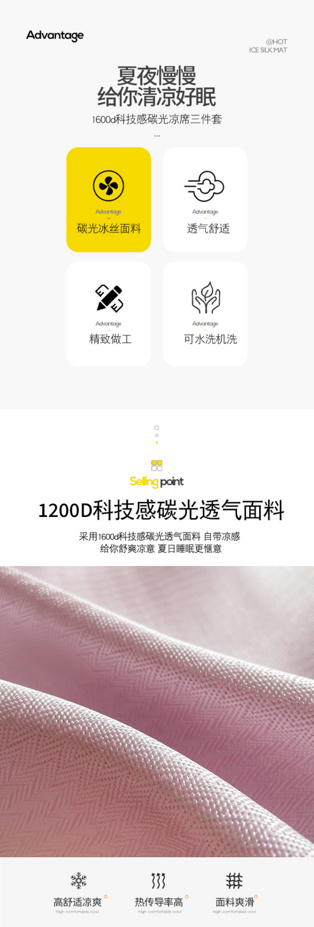 Летний шелковый коврик, складной комплект для школьников и студентов, 3 предмета