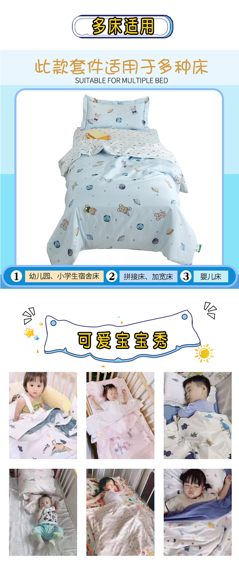 Одеяло для детского сада, хлопковый комплект, детское покрывало для сна, 3 предмета, постельные принадлежности