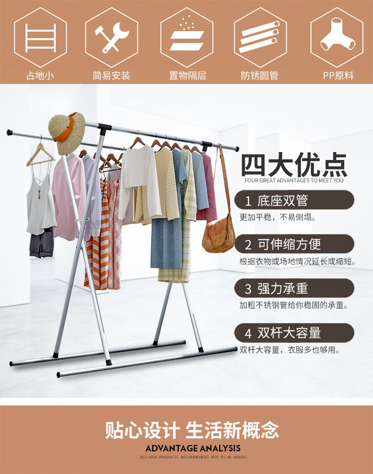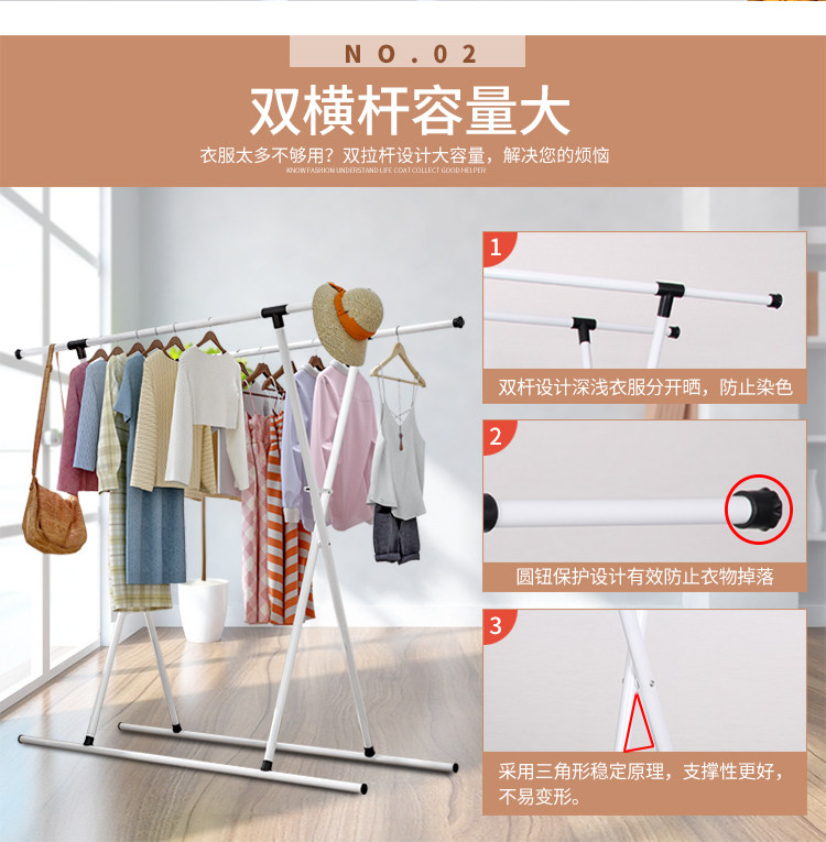 Дайте двойной тип телескопического складного балкона спальня дома, приземляясь с сушкой одеждой с сушкой стержней и подвесными стойками