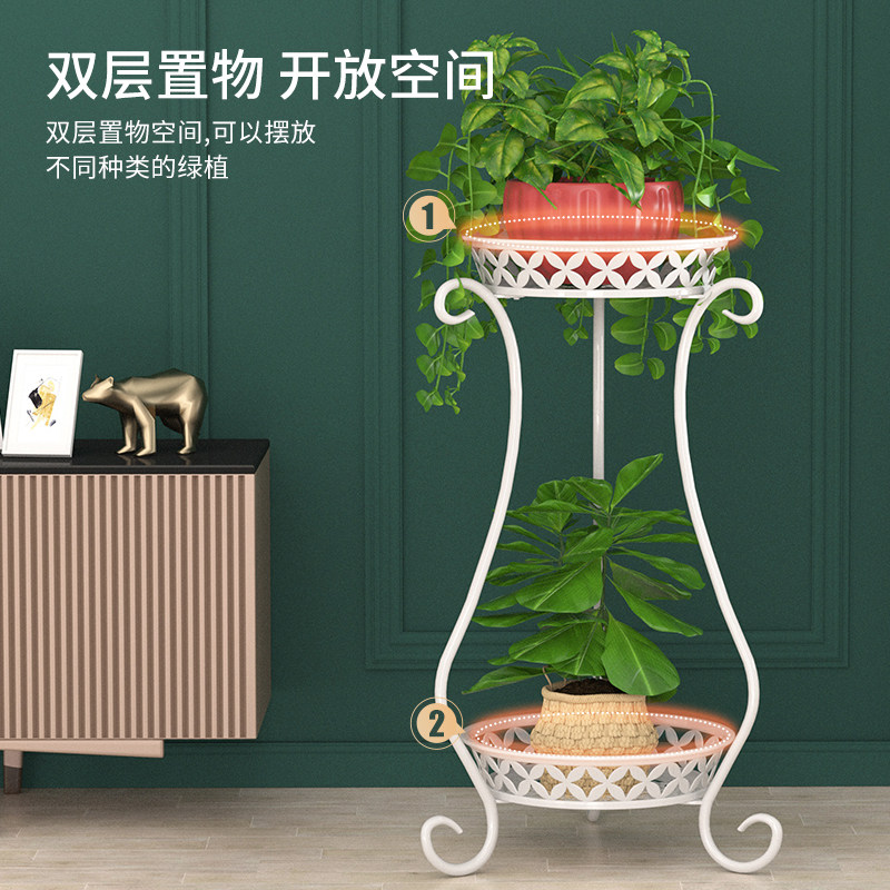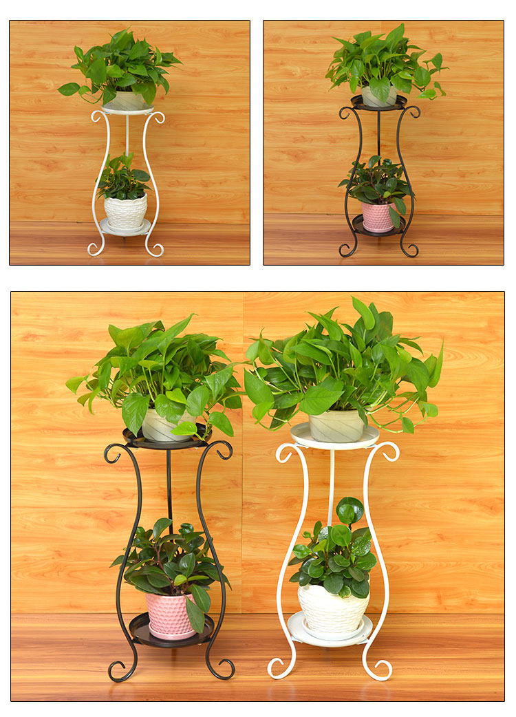 Большие горшки из зеленых расколов, расположенных с цветочными горшками в цветочной стойке, на обеих сторонах растений по обе стороны полок растений являются основными
