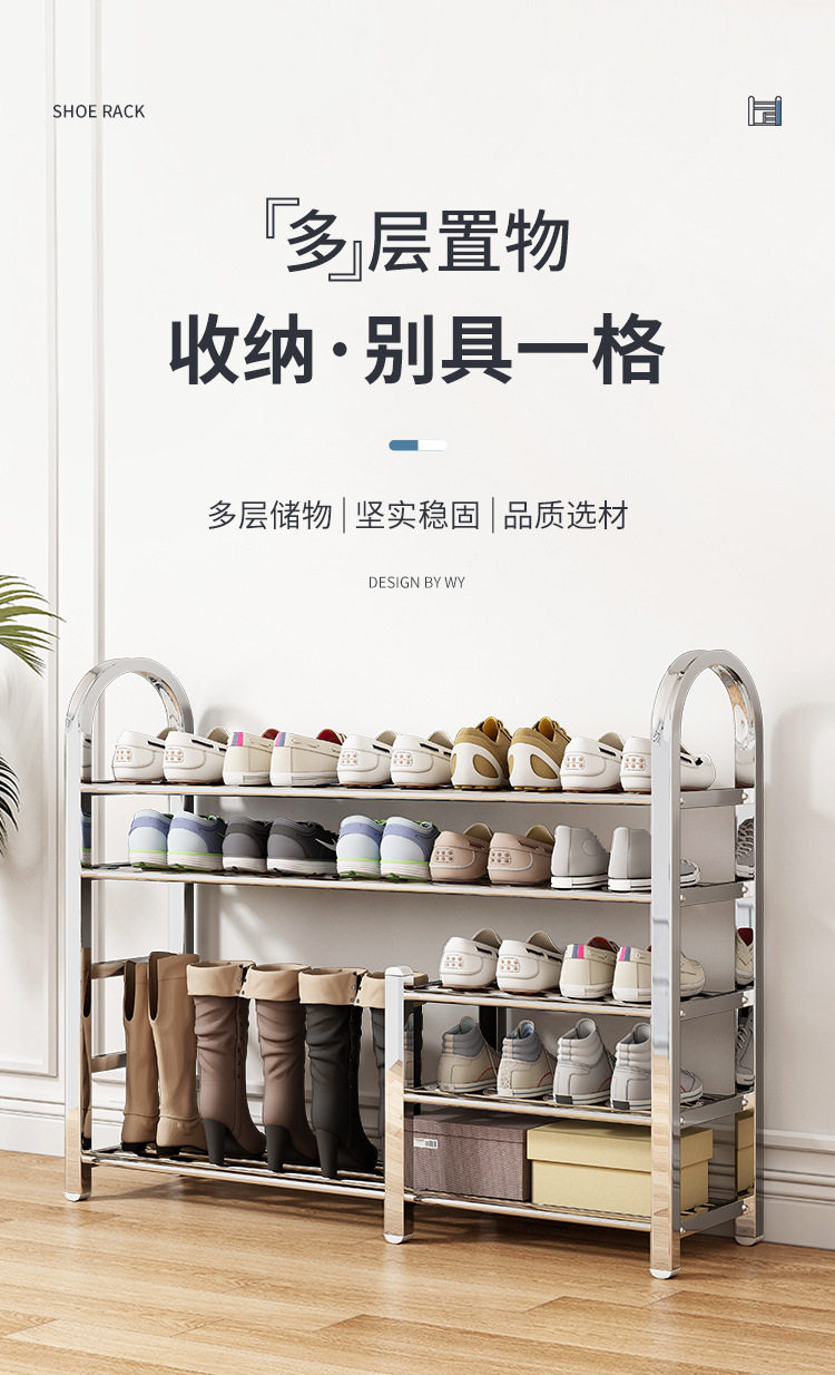 Обувь стойка из нержавеющей стали домохозяйственной коридор коридор простые многослойные толстого, прочный домовой шкаф для обуви для проката