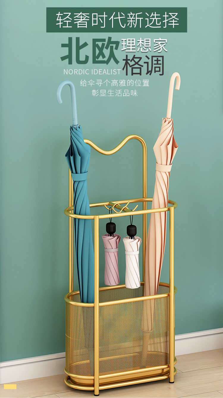 2024 Новая высокая легкая роскошная зонтичная стойка для хранения стойки отеля лобби лобби супермаркет дверь в дверь железа, зонтик ствола