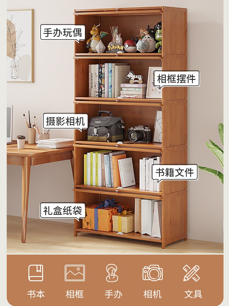 Стеклянная книжная полка для спальни, книжный шкаф из натурального дерева, система хранения