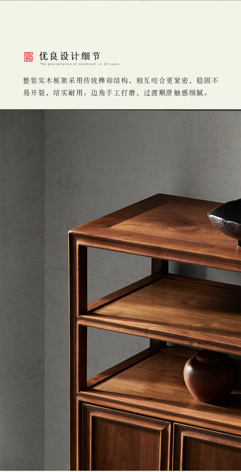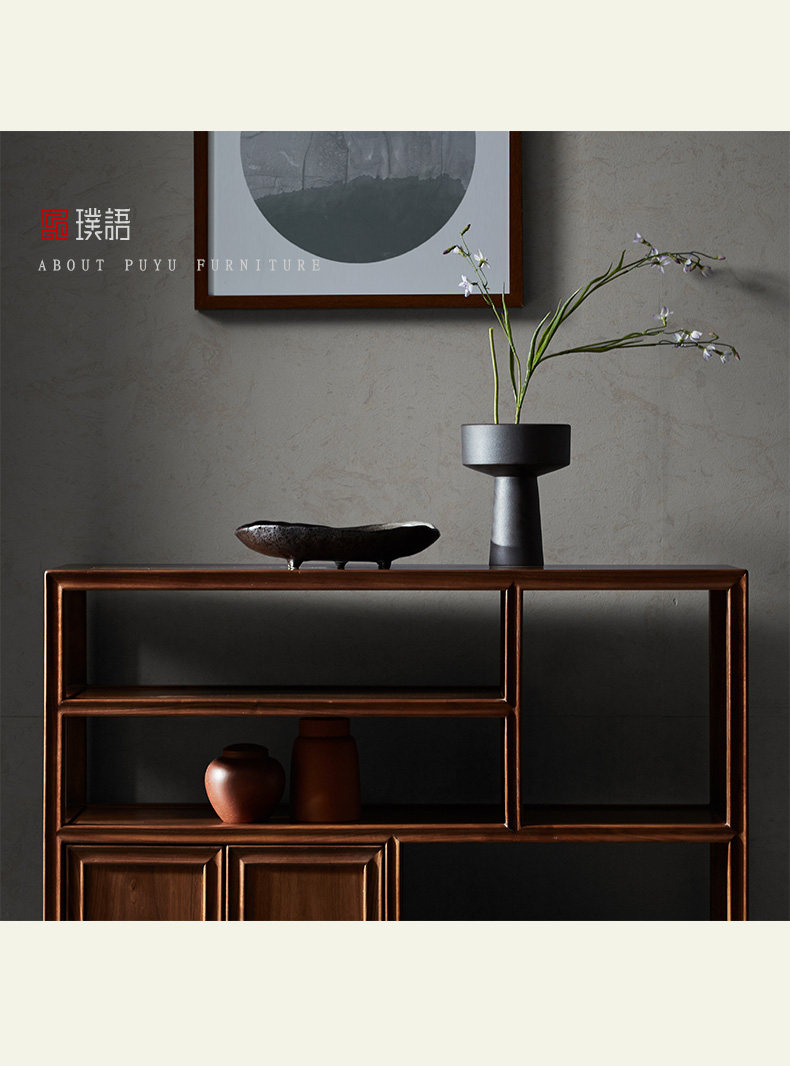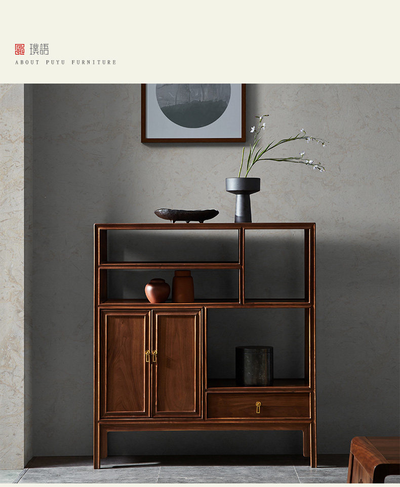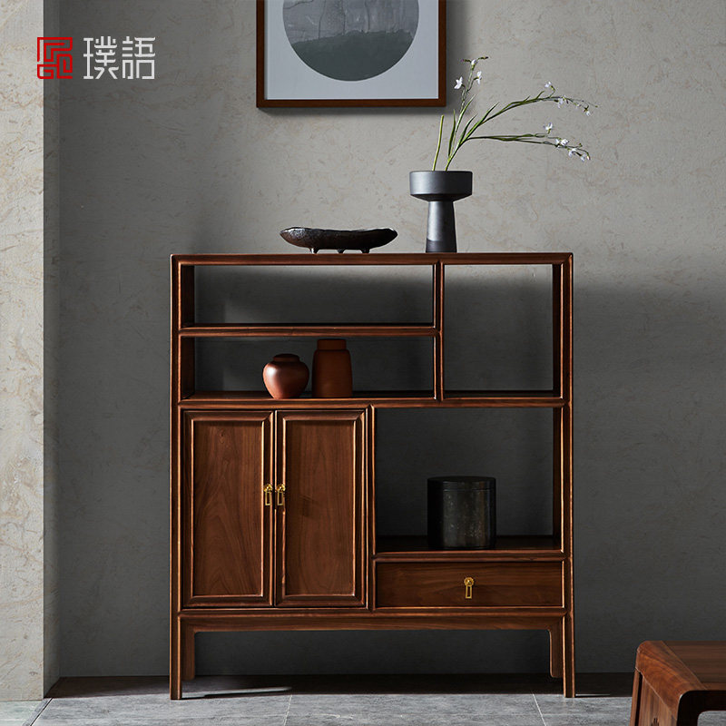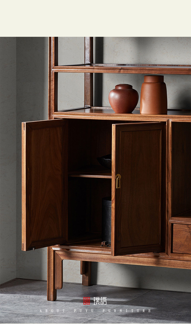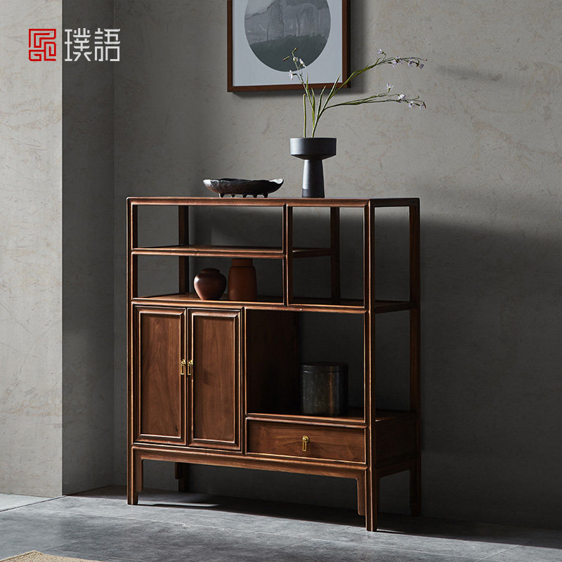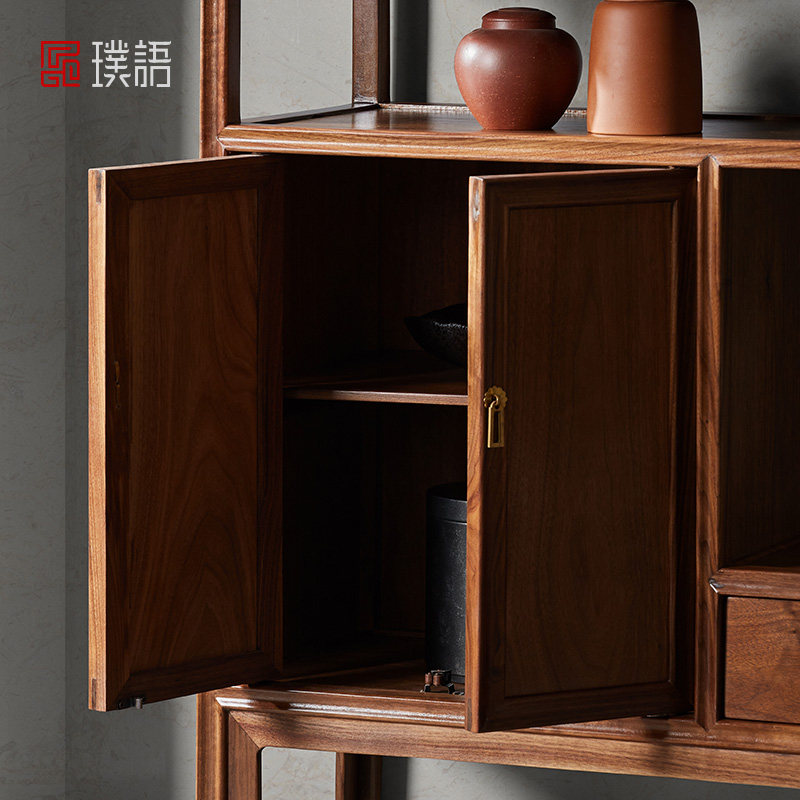 璞语 Черный грецкий чайный стол комбинированный боковой шкаф боковой шкаф Новый китайский блюд с твердым деревом боковой шкаф столешница чайный шкаф шкаф