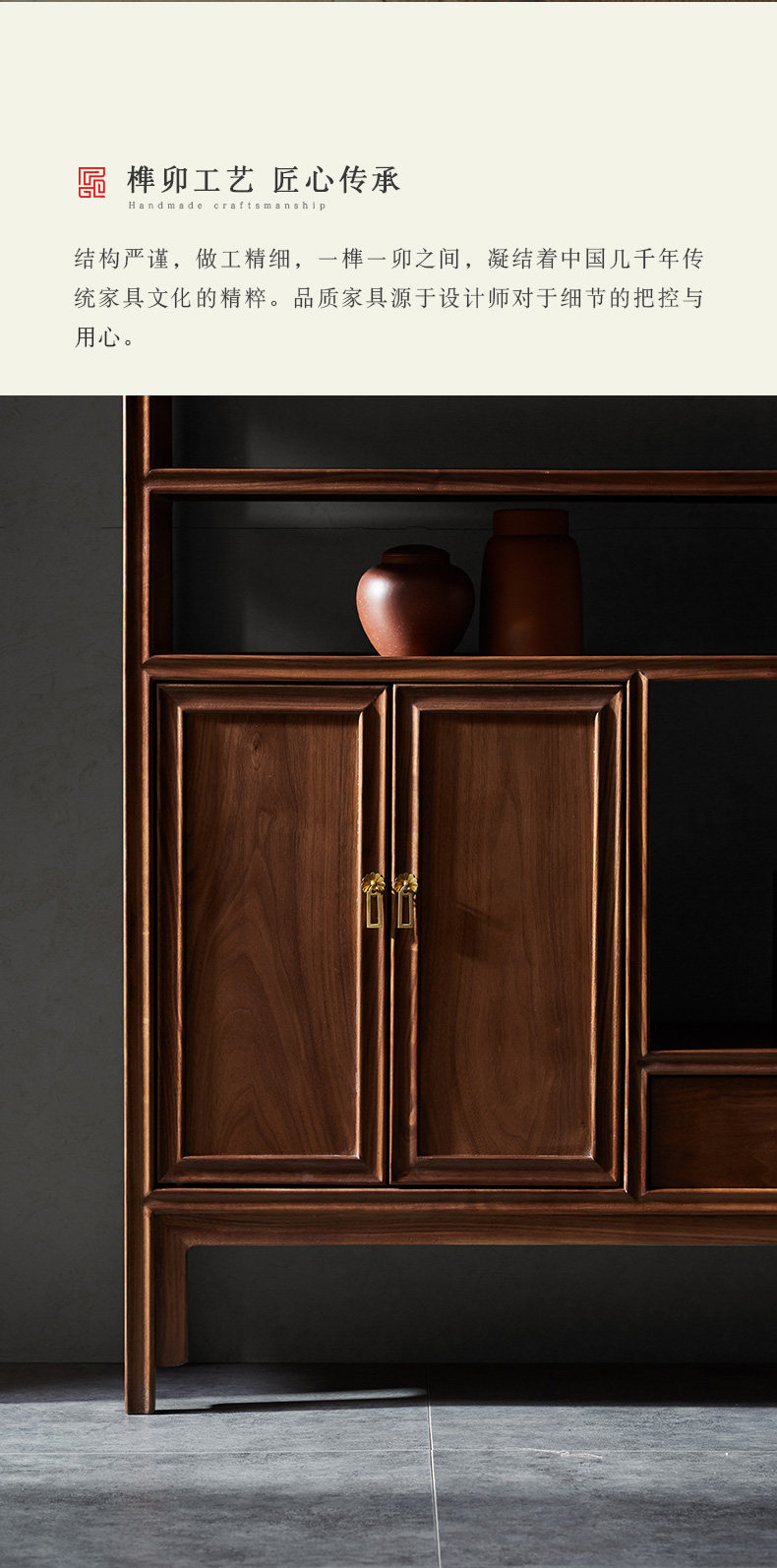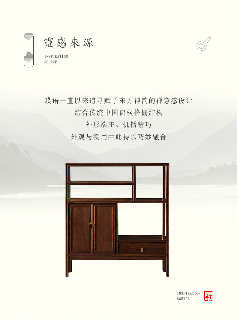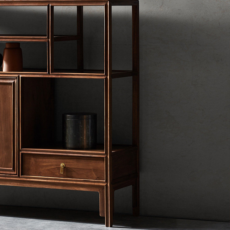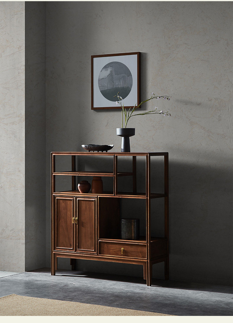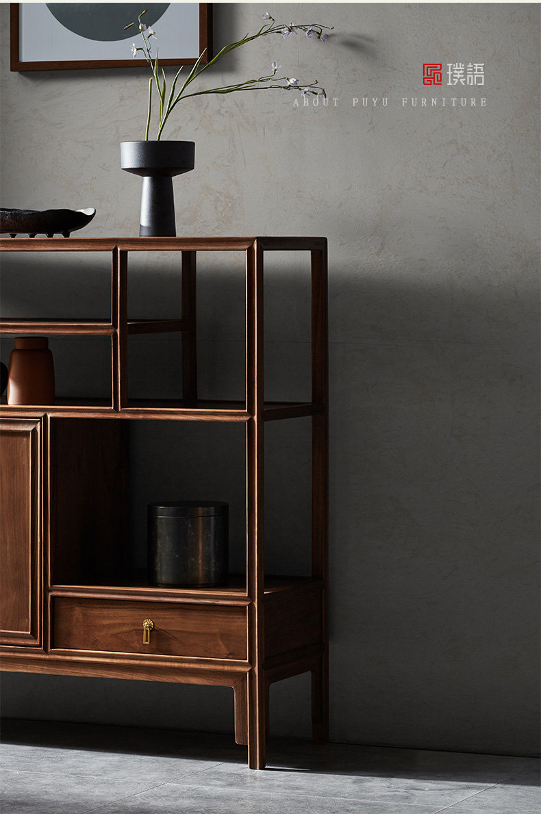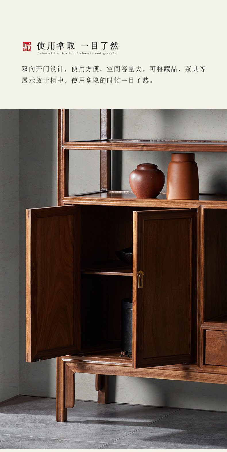 璞语 Черный грецкий чайный стол комбинированный боковой шкаф боковой шкаф Новый китайский блюд с твердым деревом боковой шкаф столешница чайный шкаф шкаф