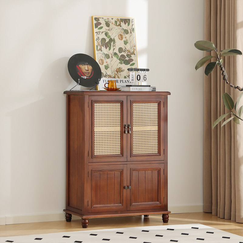 Буфет из цельного дерева, современный минималистичный шкаф из ротанга, кухонный шкаф для посуды, входной шкаф для хранения, ретро чайный шкаф, шкаф-ведро