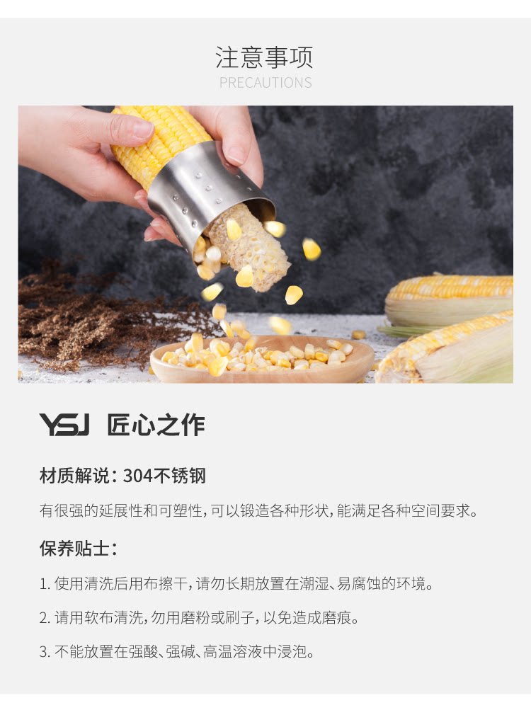 YSJ Peeling Corn Artifact Home Kitchen Multi -функция 304 из нержавеющей стали кукурузные гранулы кукурузные устройства