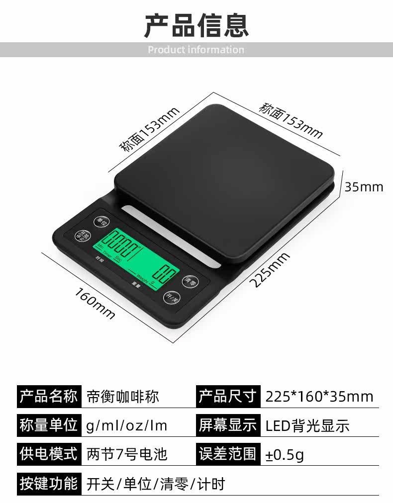 帝衡 Итальянский ручный кофе Шкала 0,1 г хронограф Электронные масштабы Маленькие граммские граммы кофе Электронный батончик