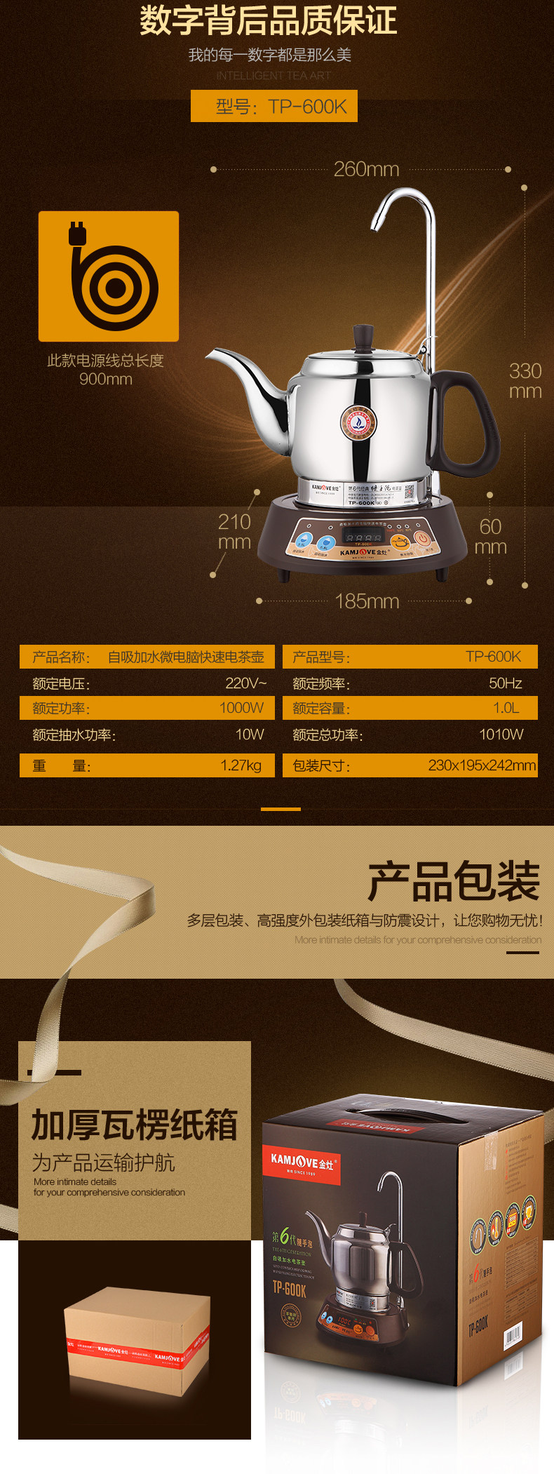 Золотая плита TP-600K Классическая пузырьковая автоматическая гидроэнергетика горячая чайник Электрическая чайная чайная касвида кипятить ретро-мотор