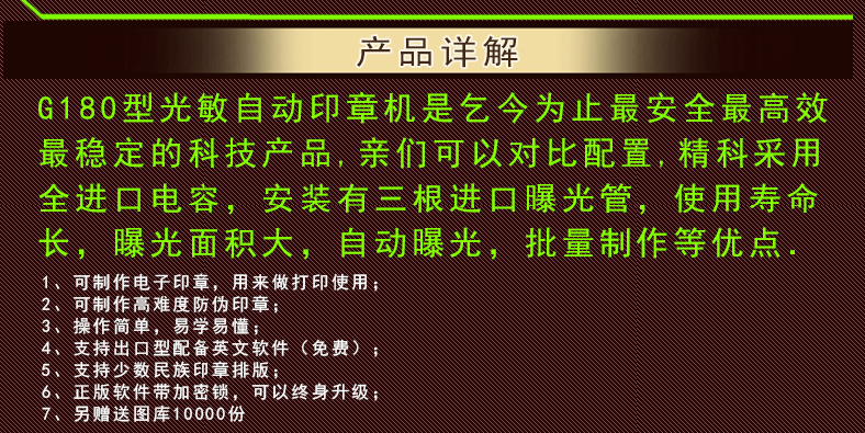 Оптическая автоматическая машина G180 - самый безопасный, самый эффективный, самый стабильный технологический продукт, который умолял сегодня. Дорогие друзья могут сравнить конфигурацию. Jingke использует полные импортированные конденсаторы.Три импортных пробирки экспозиции,Длительный срок службы, большая зона экспозиции, автоматическая экспозиция, массовое производствоИ т. д.